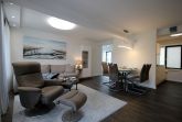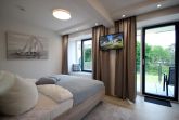 Ihr attraktives Appartement verfügt über einen einladenden Flur mit Garderobe und Zugang zum Gäste-WC mit Fenster. Angrenzend erreichen Sie den sehr gemütlichen Wohnbereich mit Essplatz sowie den erstklassig offenen Küchenbereich. Das geschmackvolle Wohnzimmer, mit Zugang zum Balkon, ist mit einer Sitzecke, Relaxsessel sowie mit einem großen Flachbild-TV und WLAN ausgestattet. In der attraktiven Küche erwartet Sie unter anderem ein Backofen, Cerankochfeld sowie ein Geschirrspüler, Kühlschrank, Tiefkühlschrank, eine Mikrowelle, Kaffeemaschine, Wasserkocher, Toaster sowie weiteres umfangreiches Kücheninventar. Das Hauptschlafzimmer verfügt über ein bequemes Doppelbett, Kleiderschrank, zusätzlichem Flachbild-TV sowie Zugang zum Balkon. Das Hauptbad erwartet Sie mit einer ebenerdigen Regendusche, einem Waschtisch, fest installiertem Fön sowie WC. Im zweiten Schlafbereich befindet sich ein französisches Doppelbett, ein bequemer Schlafsessel für die 5. Person, Flachbild-TV und Kleiderschrank. In beiden Schlafzimmern sorgen zusätzliche Verdunklungsstoffe für einen erholsamen Schlaf. Rundum eine erstklassig eingerichtete Wohnung zum Abschalten vom Alltag und Genießen des Urlaubes.