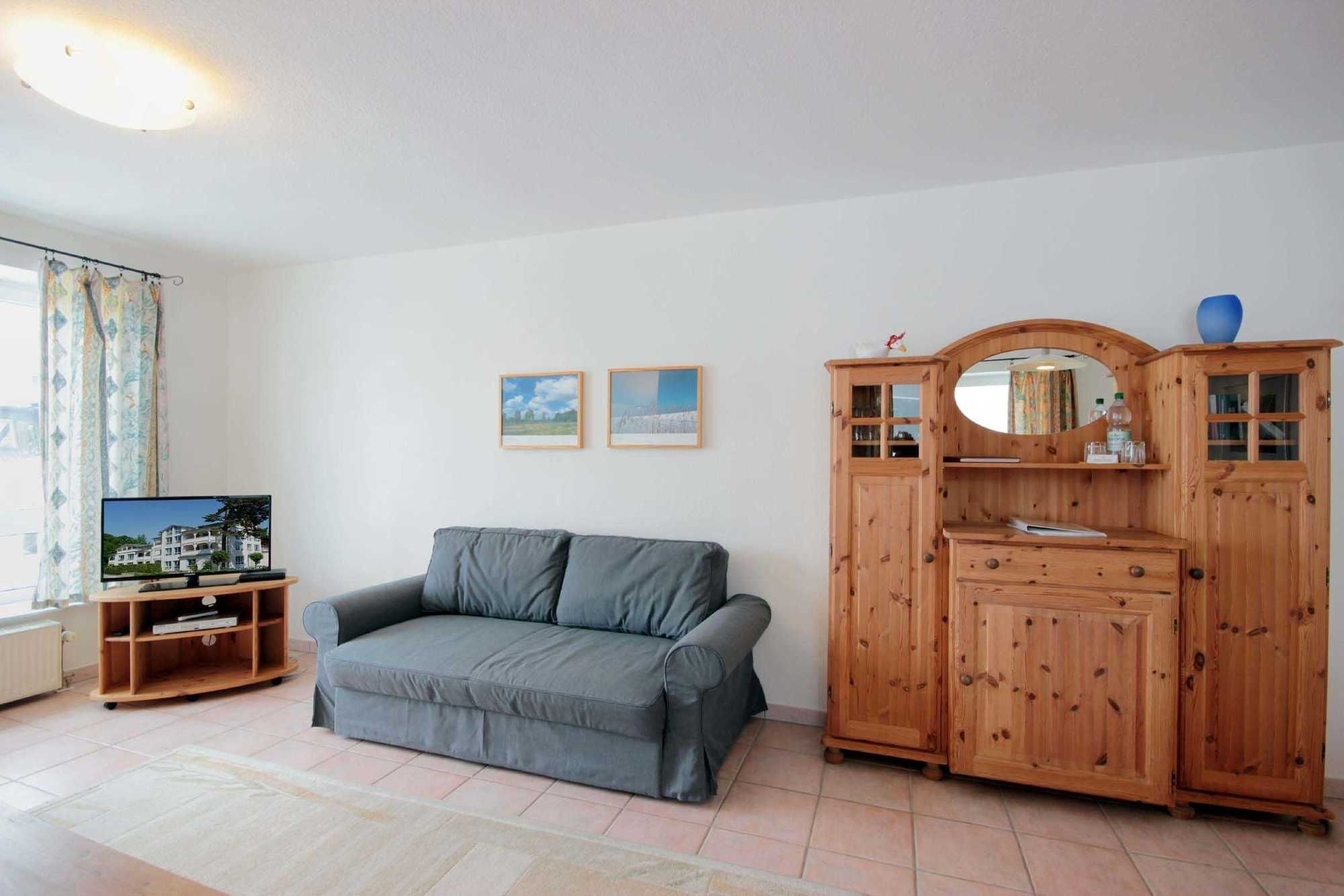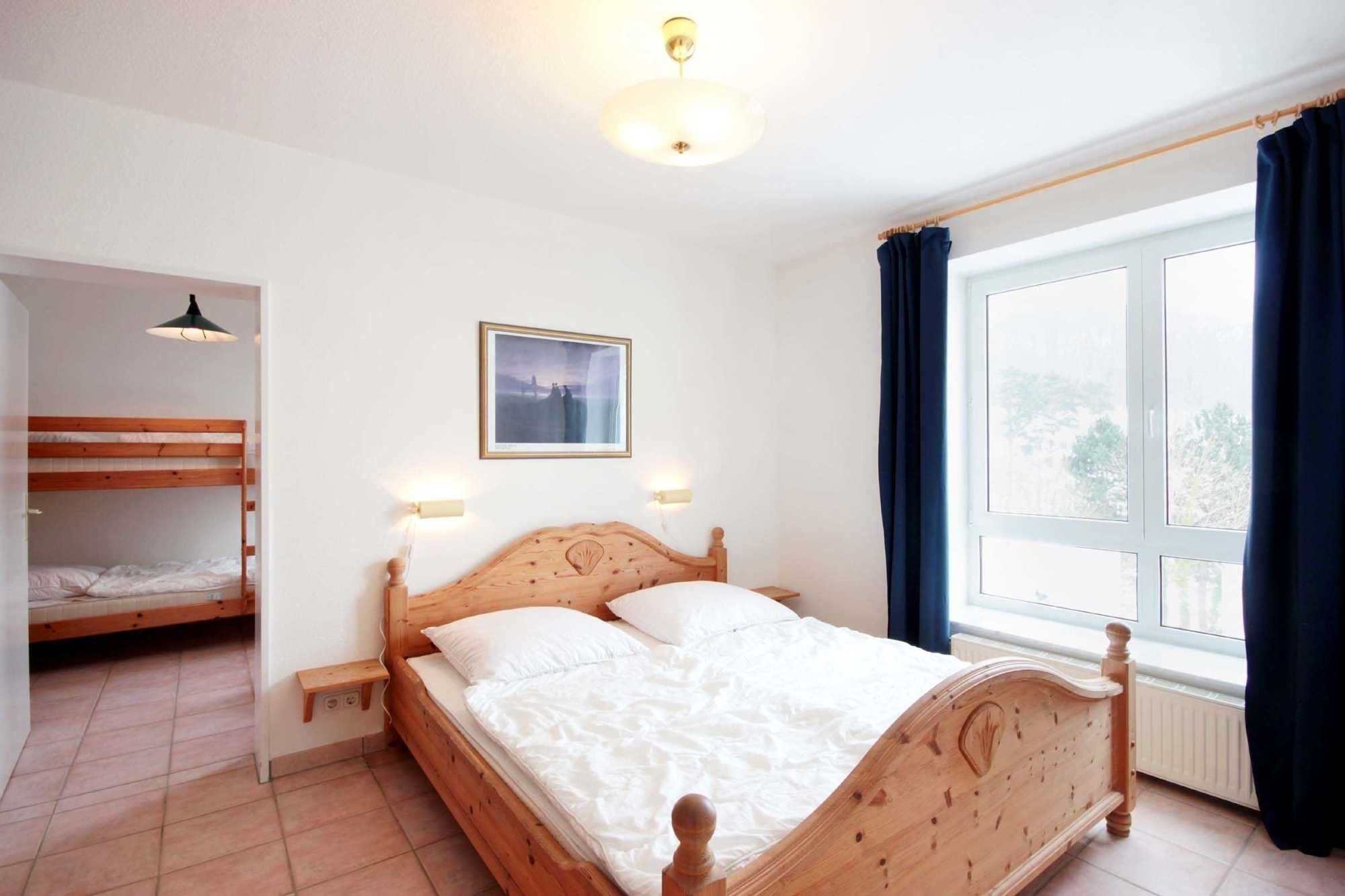 Ihre Nichtraucher 3-Raum Ferienwohnung 63RB14 befindet sich im 2. Obergeschoss des Hauses. Sie hat eine Größe von ca. 72 qm und ist für max. 6 Personen eingerichtet. Die Wohnung verfügt über einen Wohnraum mit ausziehbarer Doppelschlafcouch, zwei Schlafzimmer, eine separate Küche und ein Badezimmer. Vom Wohnraum haben Sie Zugang zum Balkon, welcher in Richtung Wilhelmstraße ausgelegt ist. Neben dem geräumigen Wohnraum mit Fernseher, DVD-Player, WLAN, Radio und Essbereich, ist das Hauptschlafzimmer mit Doppelbett und der zweite Schlafbereich mit einem Doppelstockbett ausgestattet. Die Küche ist komplett mit Herd, Kühlschrank, Mikrowelle, Geschirrspüler, Kaffeemaschine, Toaster und diversen Kleingeräten eingerichtet. Im Badezimmer finden Sie eine Dusche, WC und Waschtisch. Ein wohnungseigener PKW - Parkplatz steht Ihnen direkt am Haus zur Verfügung.