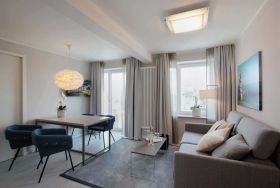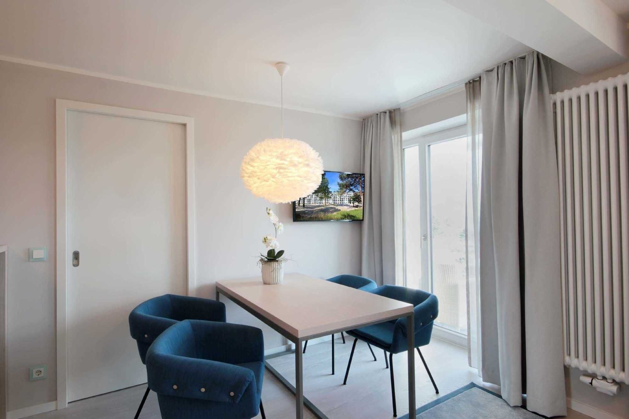 Ihre Nichtraucherwohnung verfügt über einen vorgelagerten Flur mit Garderobe. Angrenzend ist das schöne Wohnzimmer mit Essbereich und die moderne Wohnküche zu finden. Der stilvoll eingerichtete Wohnbereich, mit Zugang zum Balkon, ist mit einer Sitzgruppe und Flachbild-TV ausgestattet.