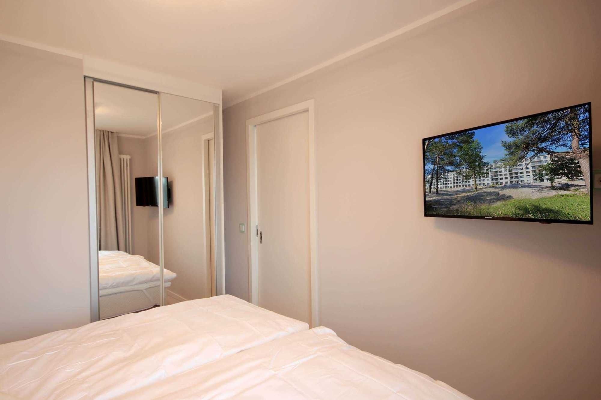 Das Hauptschlafzimmer verfügt über ein Boxspringbett, Kleiderschrank, einen weiteren Zugang zum Balkon sowie über ein eigenes Bad mit Badewanne. Im zweiten Schlafbereich befindet sich ebenso ein Boxspringbett, Kleiderschrank sowie ein weiterer Flachbild-TV.