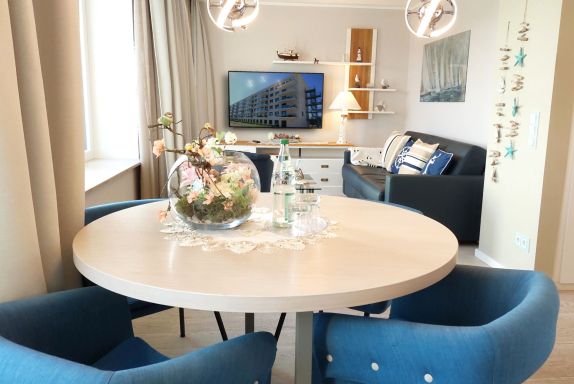 Die helle 2-Raum-Nichtaucherwohnung 104RB521 befindet im 5. Obergeschoss des Aufgangs 105 (Block I) und ist bequem per Fahrstuhl zu erreichen. Das Apartment verfügt über einen Frühstücksbalkon mit Blick auf die Ostsee.