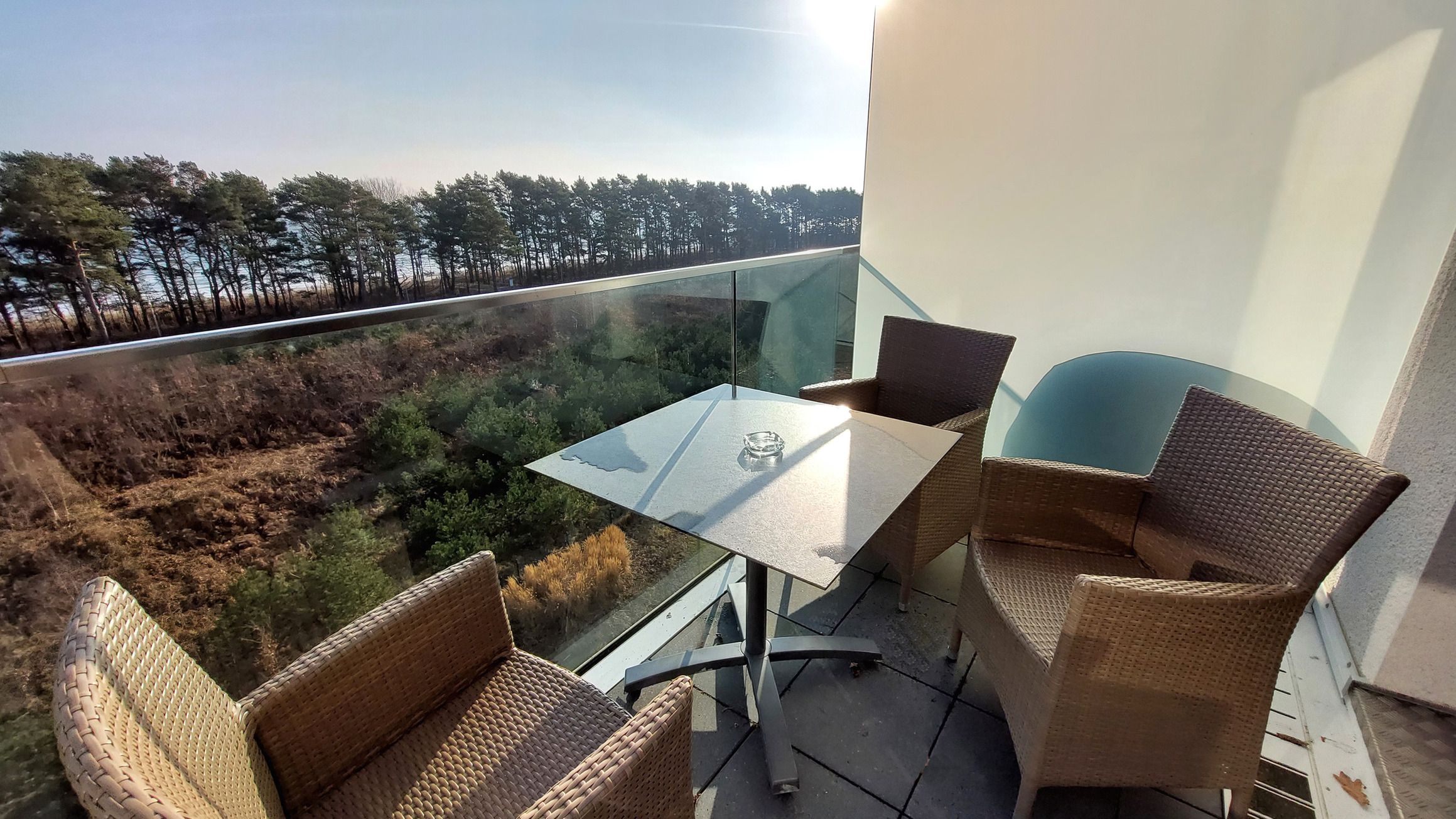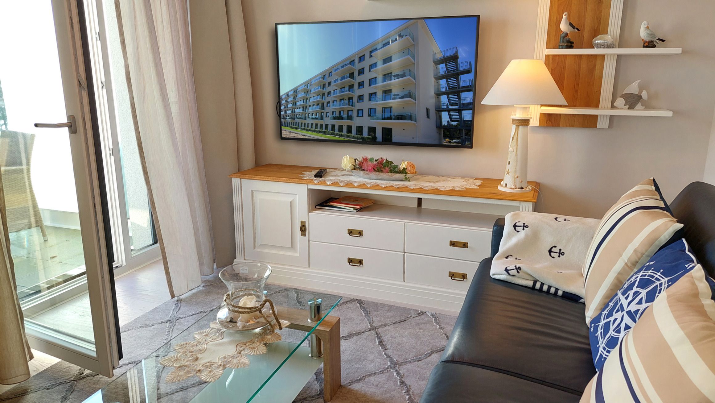 Vom Wohnbereich haben Sie Zugang zum möblierten Meerblickbalkon.