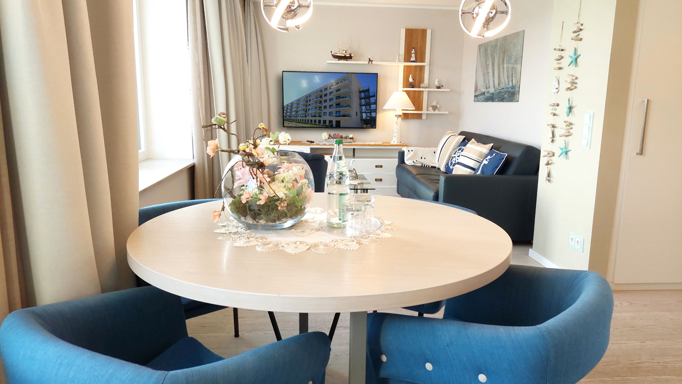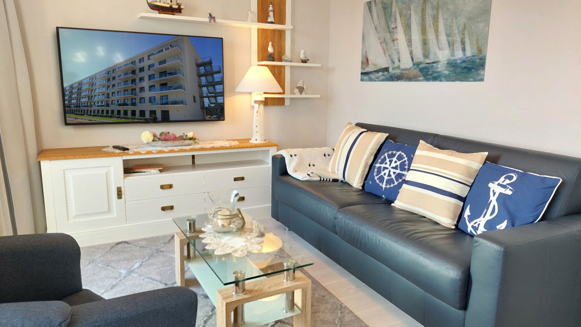 Zur technischen Ausstattung gehört ein Smart-TV samt Blu-Ray-Player, eine Musikanlage, sowie ein kostenfreies WLAN-Netz.