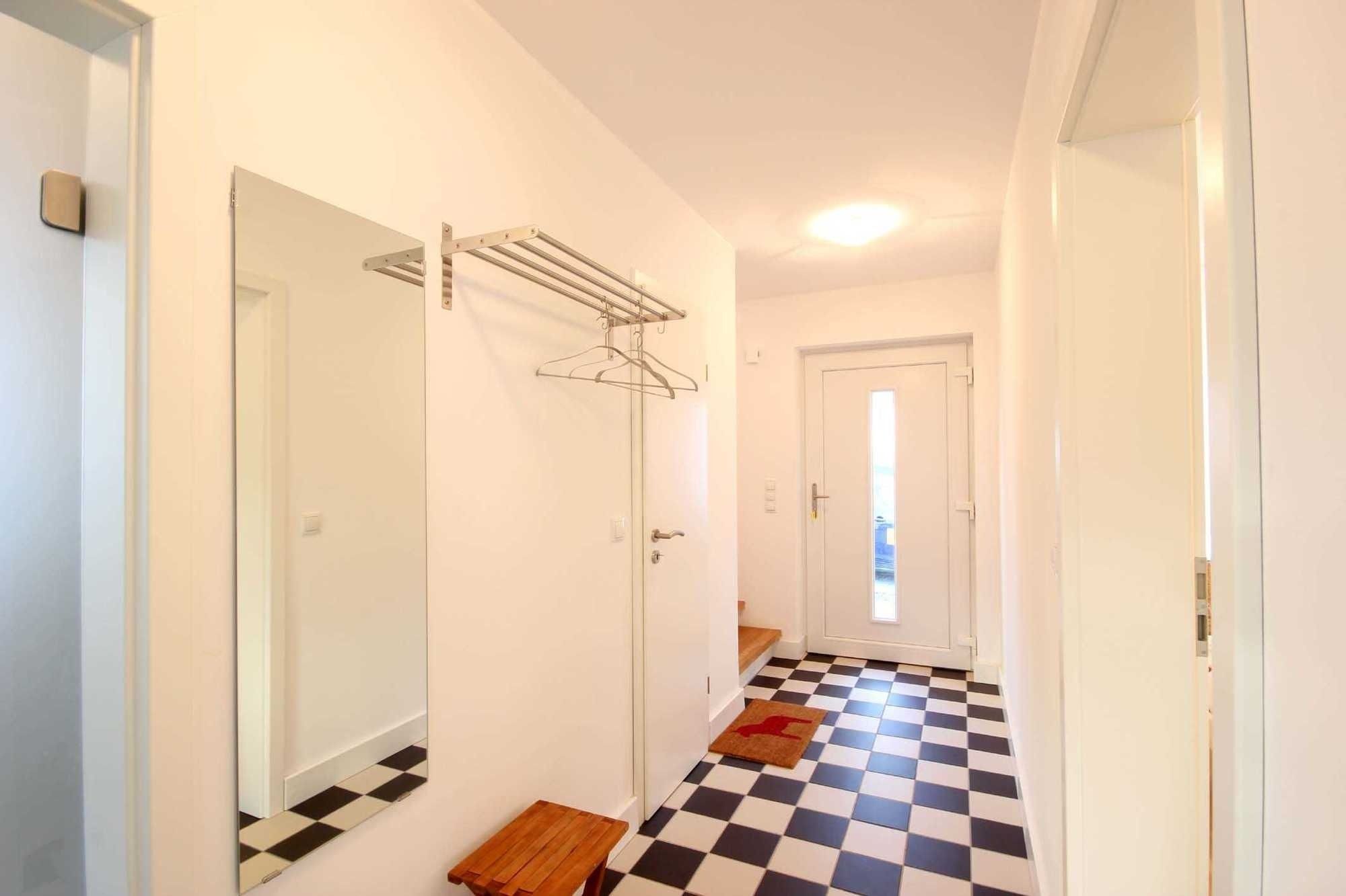 Das gemütliche Appartement, mit Fußbodenheizung in allen Räumen, erreichen Sie über einen eigenen Zugang. Von hier aus gelangen Sie über den Flur mit Garderobe und Spiegel in den großzügigen Wohnraum mit Zugang zur Terrasse, einer schönen Ledereckcouch, Flachbildfernseher sowie Holzkamin. Die separate Küche, ebenso mit Zugang zur Terrasse, erwartet Sie mit einer Kochzeile sowie Essplatz. Die technische Ausstattung umfasst ein 2-Platten Cerankochfeld, Kühlschrank, Backofen, Kaffeemaschine, Wasserkocher und Toaster. Im Schlafzimmer erwartet Sie ein Doppelbett sowie ein Kleiderschrank. Das Tageslichtbad ist ausgestattet mit Waschbecken, ebenerdiger Regendusche, Kosmetikspiegel sowie WC. Über eine Treppe gelangen Sie vom Flur in den oberen Teil der Wohnung. Hier finden Sie ein weiteres Schlafzimmer mit Einzelbett, Sitzmöglichkeit und Kommode sowie ein zusätzliches Tageslichtbad mit Waschbecken, Badewanne, Kosmetikspiegel und WC vor.