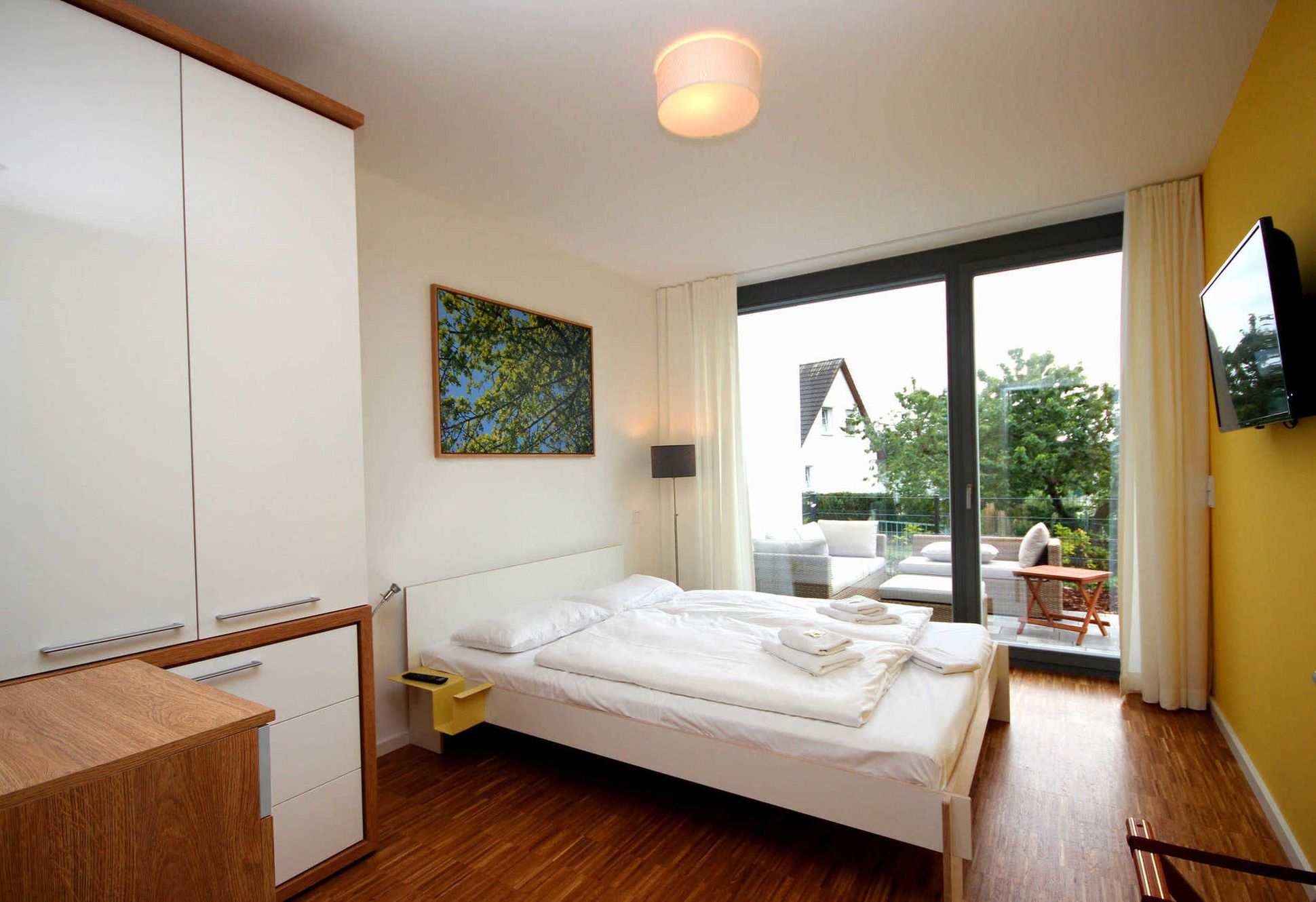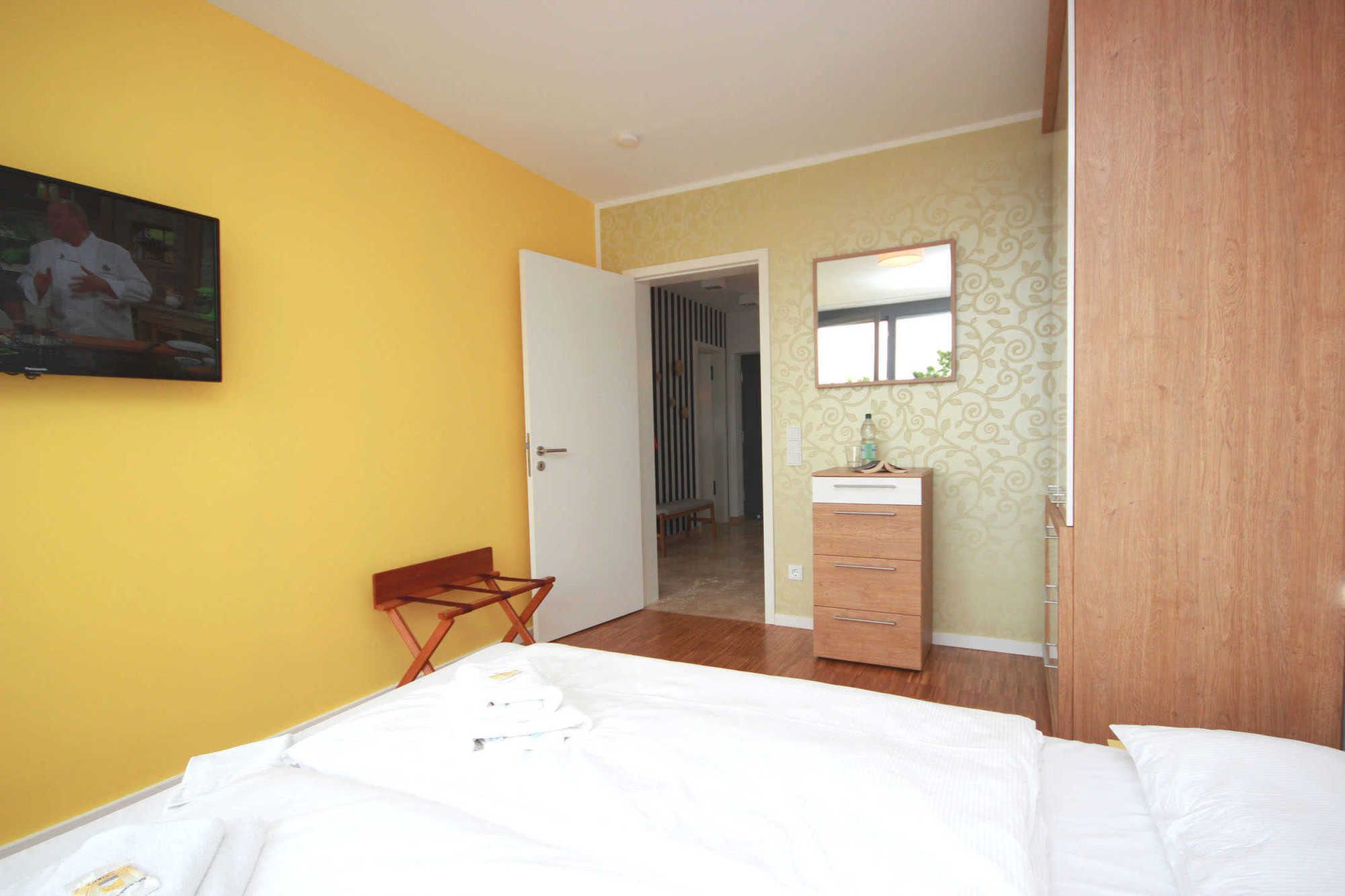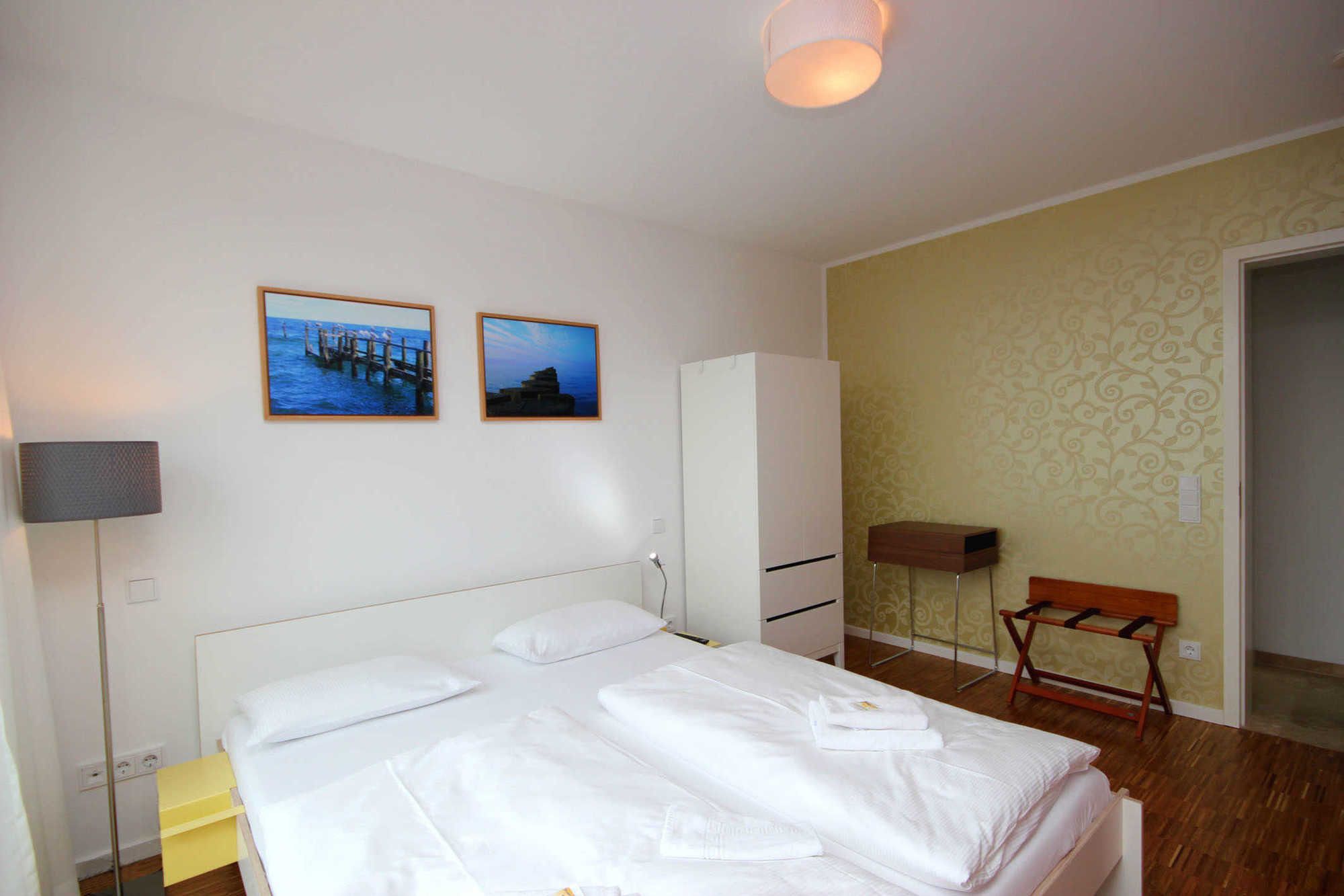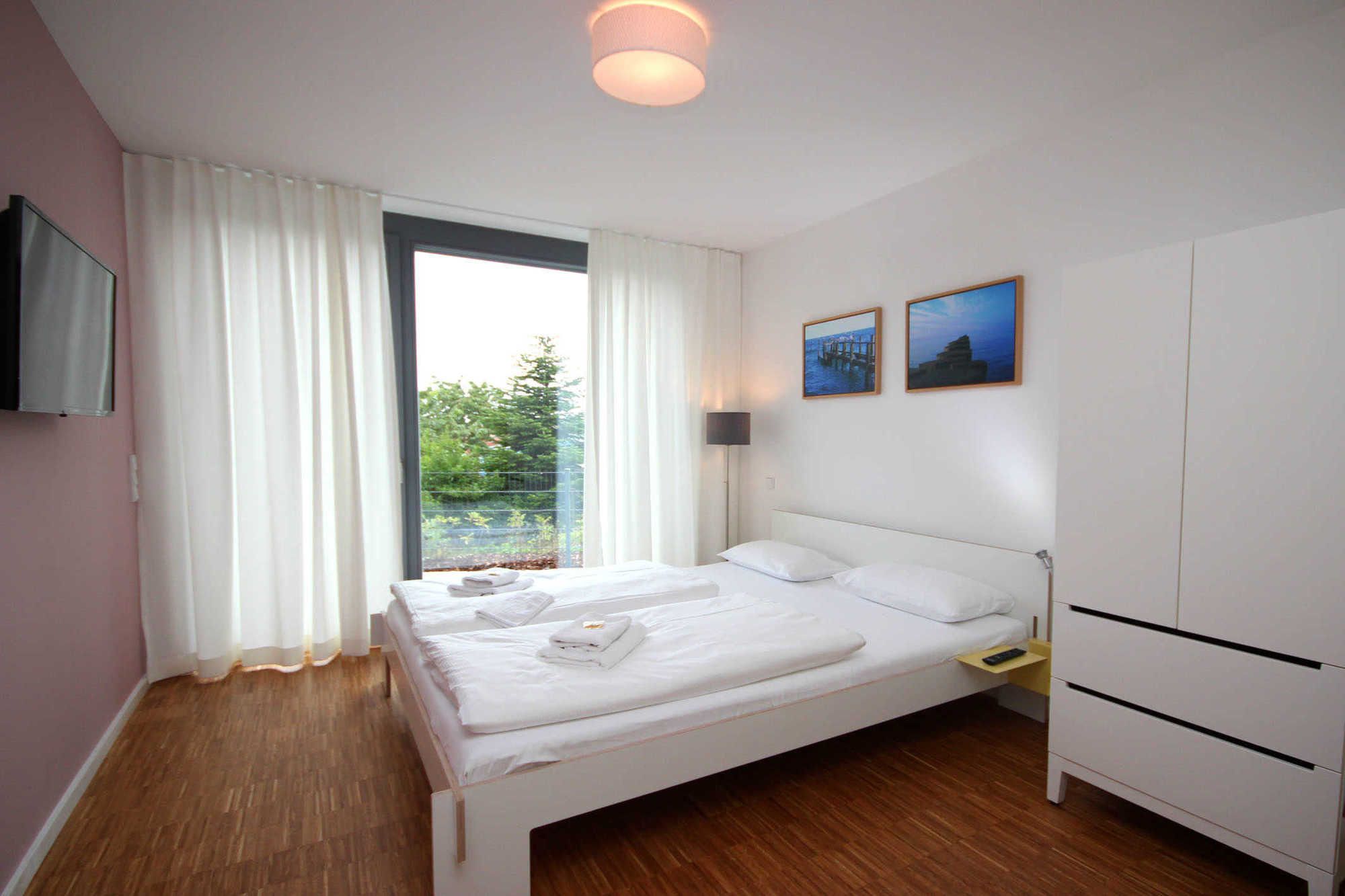 In beiden Schlafzimmern befinden sich jeweils ein großes und gemütliches Doppelbett, ein Kleiderschrank, Verdunklungsmöglichkeiten und Flachbildfernseher. Ein Schlafzimmer bietet darüber hinaus einen Sekretär zum Verfassen der Urlaubsgrüße. Zusätzlichen Stauraum bietet das zweite Schlafzimmer mit einer weiteren Kommode.