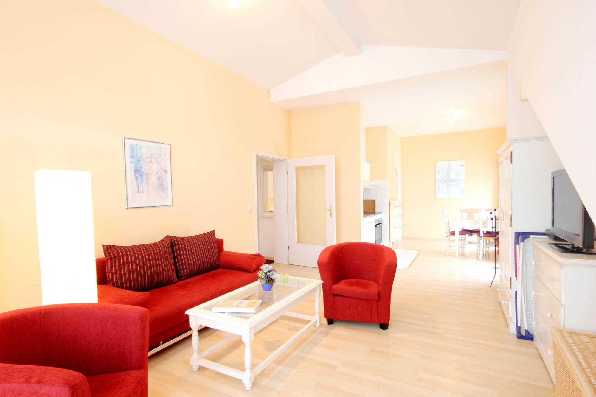 Ihre Ferienwohnung 31RB2 befindet sich im 2. Obergeschoss des Hauses (zur Lottumstaße). Genießen Sie Ruhe auf einem großen sonnigen Süd-Balkon und einen Ostbalkon. Die schöne 2,5 - Raumwohnung besitzt eine Größe von ca. 66 qm und kann mit bis zu 4 Personen gebucht werden. Neben dem Wohnraum mit integrierter Kochzeile gibt es 2 separate Schlafräume und ein Badezimmer mit Waschtisch, Dusche, Haartrockner und WC. Im 1. Schlafraum befindet sich ein Doppelbett (1,80m x 2 m) und ein Kleiderschrank. Der fensterlose, kleine 2. Schlafraum liefert bei Bedarf mit einem Doppelstockbett noch Schlafplätze für 2 Personen. Im Wohnraum befinden sich ein gemütliches Sofa, zwei Sessel und ein weiterer Kleiderschrank sowie eine Kommode. Die Kochzeile ist mit Kühlschrank, Backofen, Cerankochfeld und diversen Kleingeräten ausgestattet. Daneben befindet sich ein separater Essplatz. Zur technischen Ausstattung gehören TV, Radio und CD-Spieler. Münzwaschmaschine und Münztrockner können Sie im Vorderhaus nutzen. Ab sofort können all unsere Gäste einen kostenfreien WLAN-Zugang nutzen. Ein PKW-Stellplatz unterm Carport (1,98m hoch; 2,25m breit; 6m lang) steht Ihnen direkt am Haus zur Verfügung.