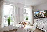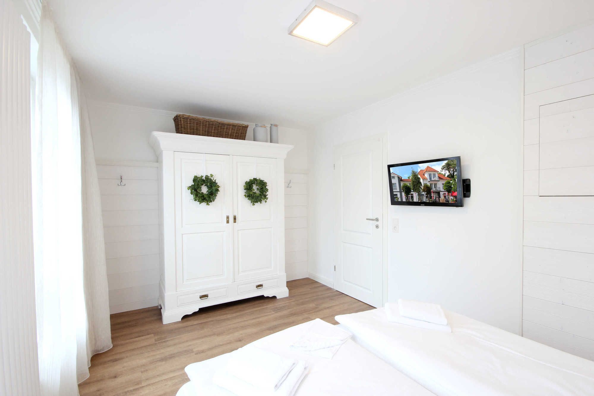Neben dem Wohnraum mit offener Küche gibt es einen Schlafraum, sowie ein Badezimmer mit Doppelwaschbecken, Fön, Dusche und WC. Der Schlafraum ist mit einem Doppelbett, TV und einem großen Kleiderschrank ausgestattet. Außerdem finden Sie im komfortablen Wohnbereich neben der Sitzecke mit Schlafsofa (Liegefläche 2m x 1.65m) für die 3. und 4. Person einen separaten Essplatz, TV mit integriertem Radio und kostenfreiem WLAN. Die moderne Küche ist mit Geschirrspülmaschine, Mikrowelle, Cerankochfeld, Backofen, Kühlschrank und diversen Kleingeräten ausgestattet. Ein wohnungseigener Parkplatz steht direkt am Haus zur Verfügung. Highlight: hauseigene Sauna zum Entschleunigen!