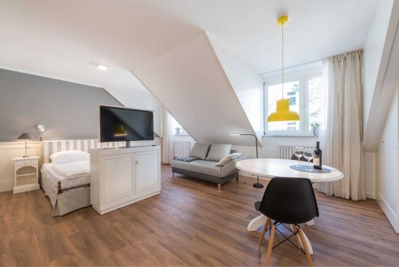 Ihre moderne Ferienwohnung 90624 befindet sich im 2. Obergeschoss im Haus Min Hüsung. Die 1 Zimmer - Wohnung im maritimen Design hat eine Größe von ca. 36 qm und ist mit bis zu 2 Personen belegbar.