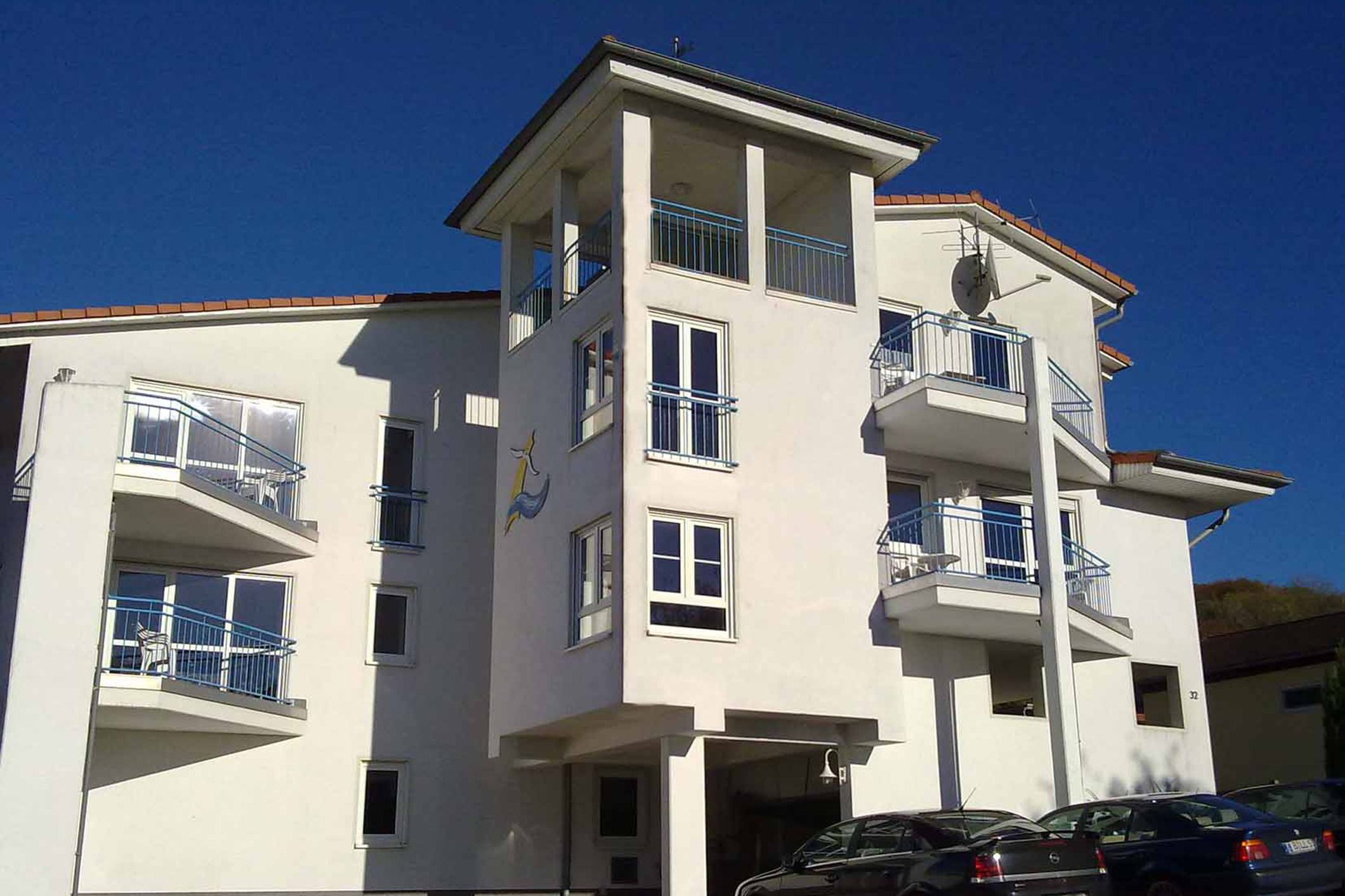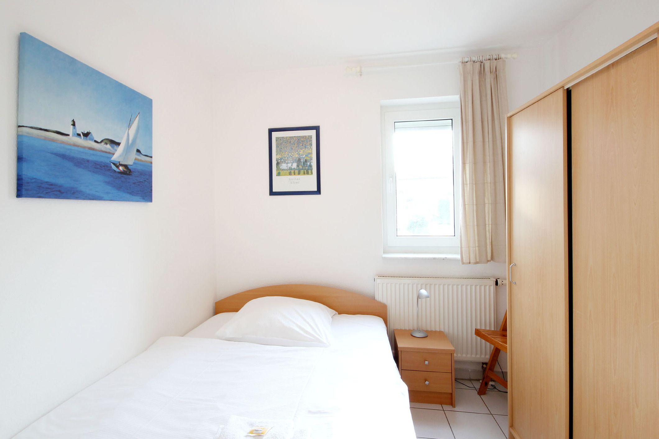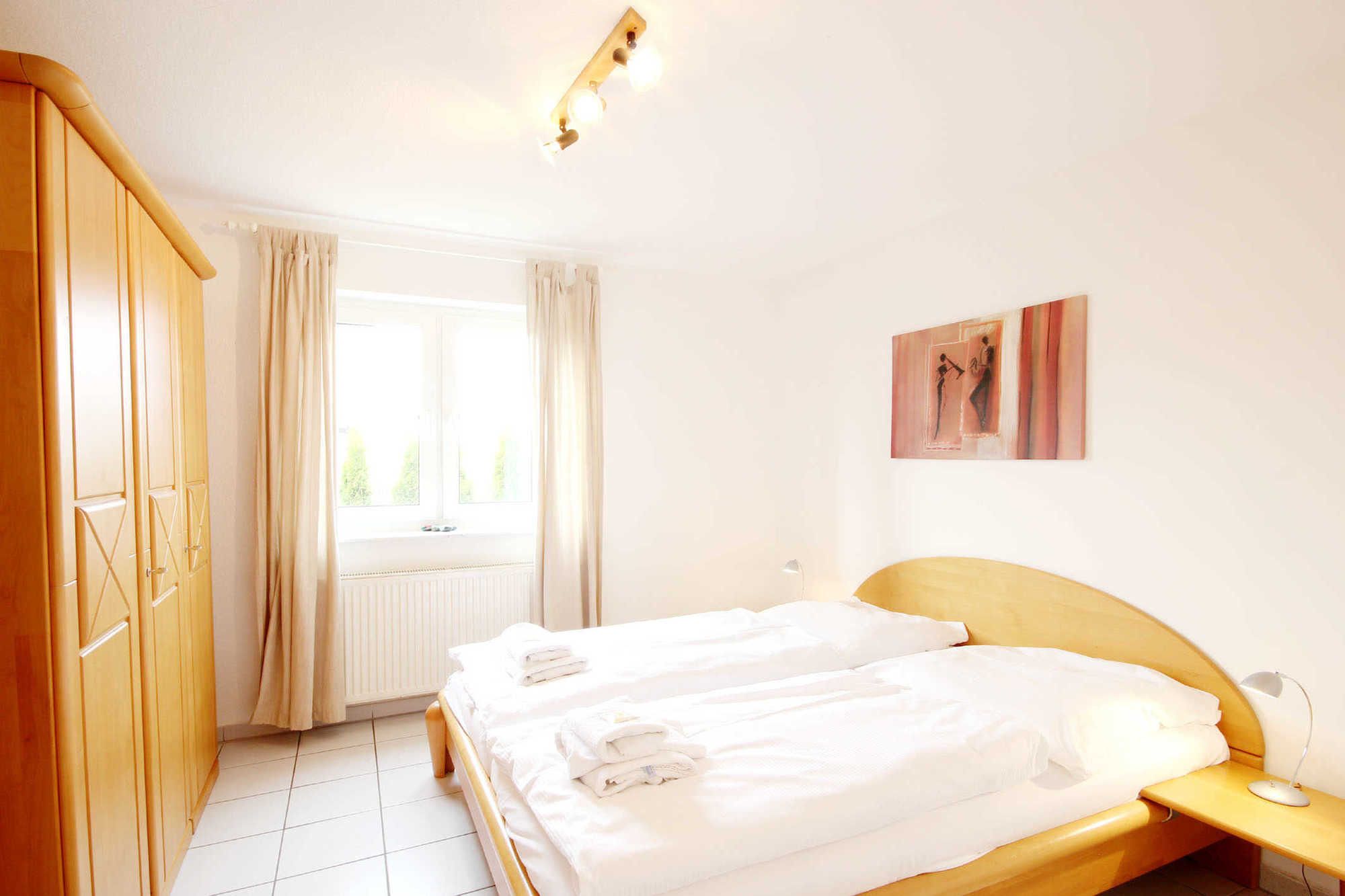 Ihre Nichtraucher-Terrassenwohnung 39RB5 hat eine Größe von ca. 60 qm und ist mit bis zu 4 Personen belegbar. Neben dem Wohnraum gibt es zwei separate Schlafräume, eine Küche sowie ein Badezimmer mit Waschtisch, Dusche/WC und festinstallierten Fön. Die beiden Schlafräume verfügen jeweils über ein Doppelbett und einen Kleiderschrank. Im komfortablen Wohnraum gibt es einen separaten Essplatz und eine gemütliche Sitzecke mit Kabel-TV, kostenfreiem WLAN-Zugang und Musik-Anlage. Die moderne Küche ist mit einem Backofen, Geschirrspüler, Kühlschrank, Ceran-Kochfeld, Mikrowelle und diversen Kleingeräten ausgestattet. Eine geschützte in Richtung Westen gelegene Terrasse schließt sich dem Wohnbereich an. Als kleines Highlight steht Ihnen ein gemeinschaftlicher Spiel- und Grillplatz im Garten zur Verfügung. Ihren Pkw können Sie kostenfrei auf dem hauseigenen Grundstück parken. Im Keller des Hauses befinden sich Münzwaschmaschine und Trockner.