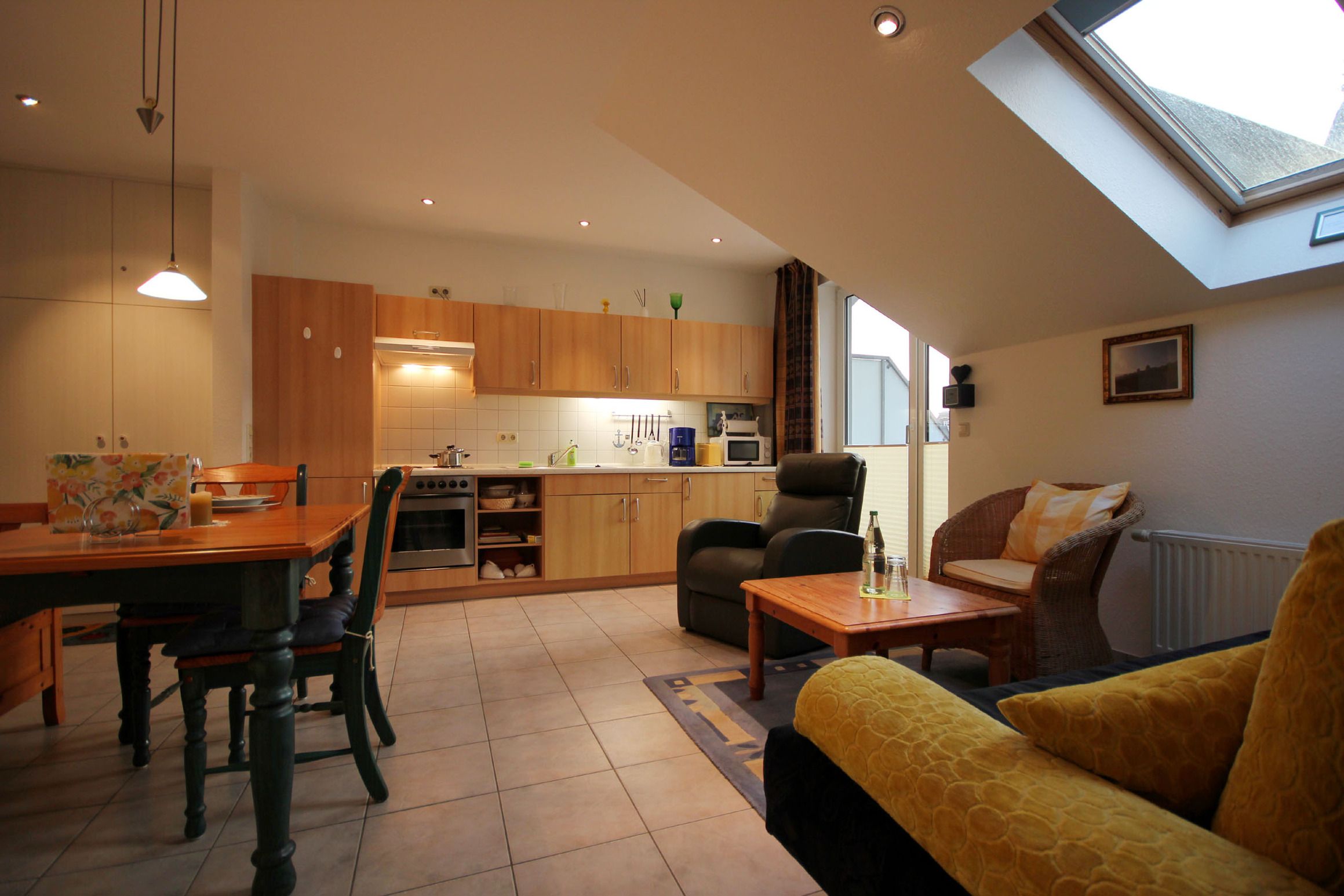 Ihre Nichtraucher-Ferienwohnung 90763 mit Balkon befindet sich im 2. Obergeschoss des Hauses Residenz Dünenstraße. Die 2 Zimmer - Wohnung hat eine Größe von ca. 42 qm und ist mit bis zu 4 Personen belegbar. Neben dem Wohn- und Essbereich mit Sitzecke gibt es ein separates Schlafzimmer, eine Küchenzeile sowie ein Badezimmer mit Waschtisch, Dusche/WC und Fön. Das Schlafzimmer verfügt über zwei Einzelbetten (welche sich bei Bedarf auch zusammenschieben lassen), einen Kleiderschrank, eine Kommode sowie Fliegengitter am Fenster. Im Wohnraum gibt es eine gemütliche Sitzecke mit Kabel-TV, WLAN und ein Radio sowie einen gesonderten Essplatz. Die Küchenzeile ist mit einem Backofen, Kühlschrank mit kleinem Gefrierfach, 4-Platten-Kochfeld, Mikrowelle, Kaffeemaschine, Wasserkocher, Toaster und diversen Kleingeräten ausgestattet. Ein geschützter in Richtung Südwest gelegener Balkon schließt sich dem Wohnbereich an. Ein wohnungseigener Parkplatz (Doppelparker max. Höhe 1,50 m) steht Ihnen in der Tiefgarage der Residenz zur Verfügung.