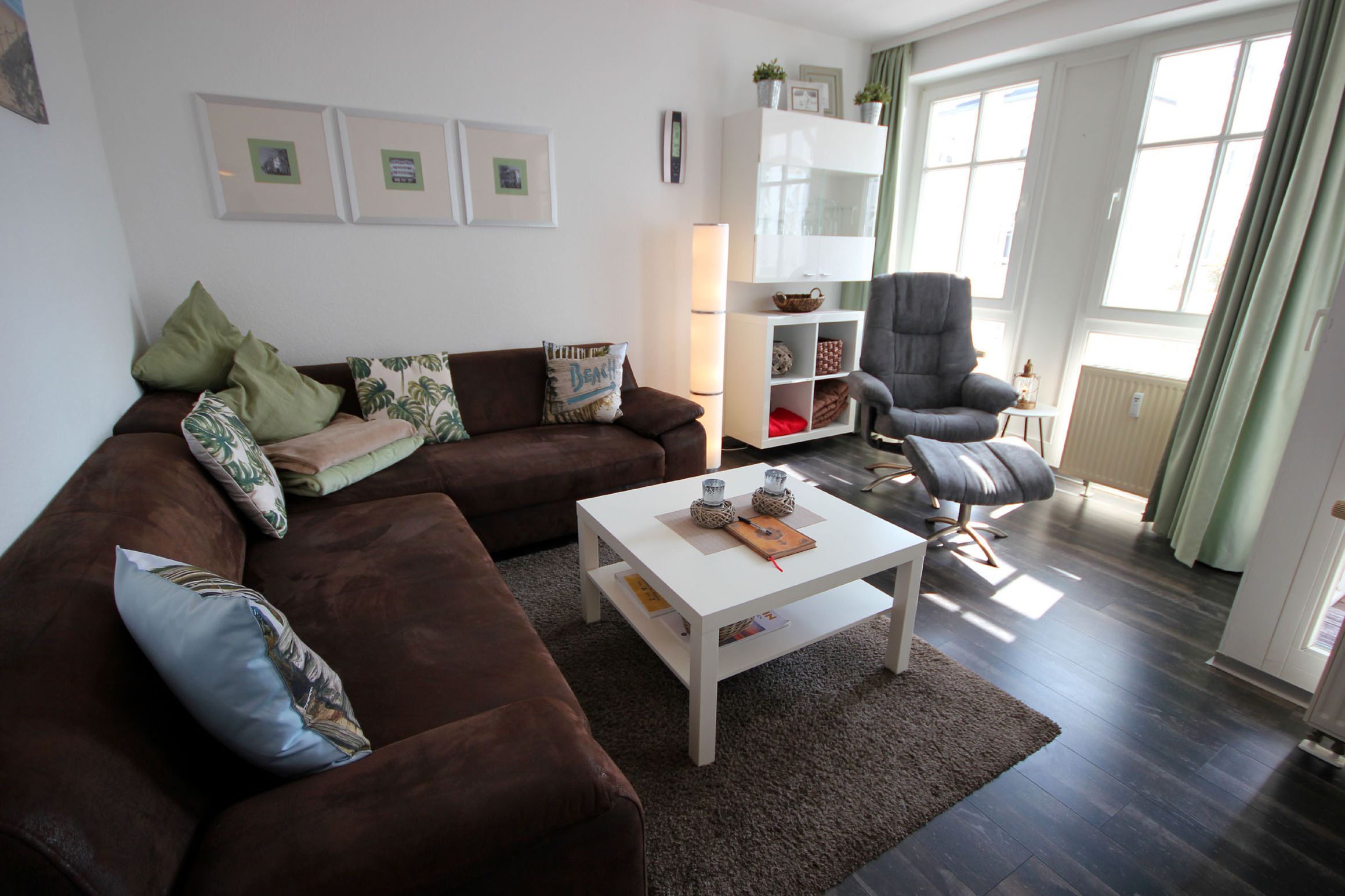 Ihre moderne und mit Liebe zum Details eingerichtete 3-Zimmer Nichtraucher-Ferienwohnung 60RB420 befindet sich im Haus Baabe, ist ca. 65 qm groß und für maximal 5 Personen eingerichtet. Sie befindet sich im 1. Obergeschoss und verfügt über 2 Balkone (Südosten und Westen) , 2 Schlafzimmer, 1 Badezimmer mit Waschtisch, Dusche, Waschvollautomat und WC, ein Wohnraum mit einer gemütlichen Sitzecke zum Ausziehen möglich. Zusätzlich können Sie einen Flat-TV, Stereoanlage und DVD-Player nutzen. Beide Schlafzimmer sind mit jeweils einem Doppelbett und Kleiderschrank ausgestattet. Zusätzlich befindet sich in einem Schlafbereich ein Flachbild-TV zum Abspielen von DVDs. In der Küche finden Sie einen Backofen, Cerankochfeld, Mikrowelle, Geschirrspüler, Kühlschrank sowie weitere kleinere Elektrogeräte. Ab sofort steht Ihnen zusätzlich ein kostenfreier WLan-Zugang zur Verfügung.