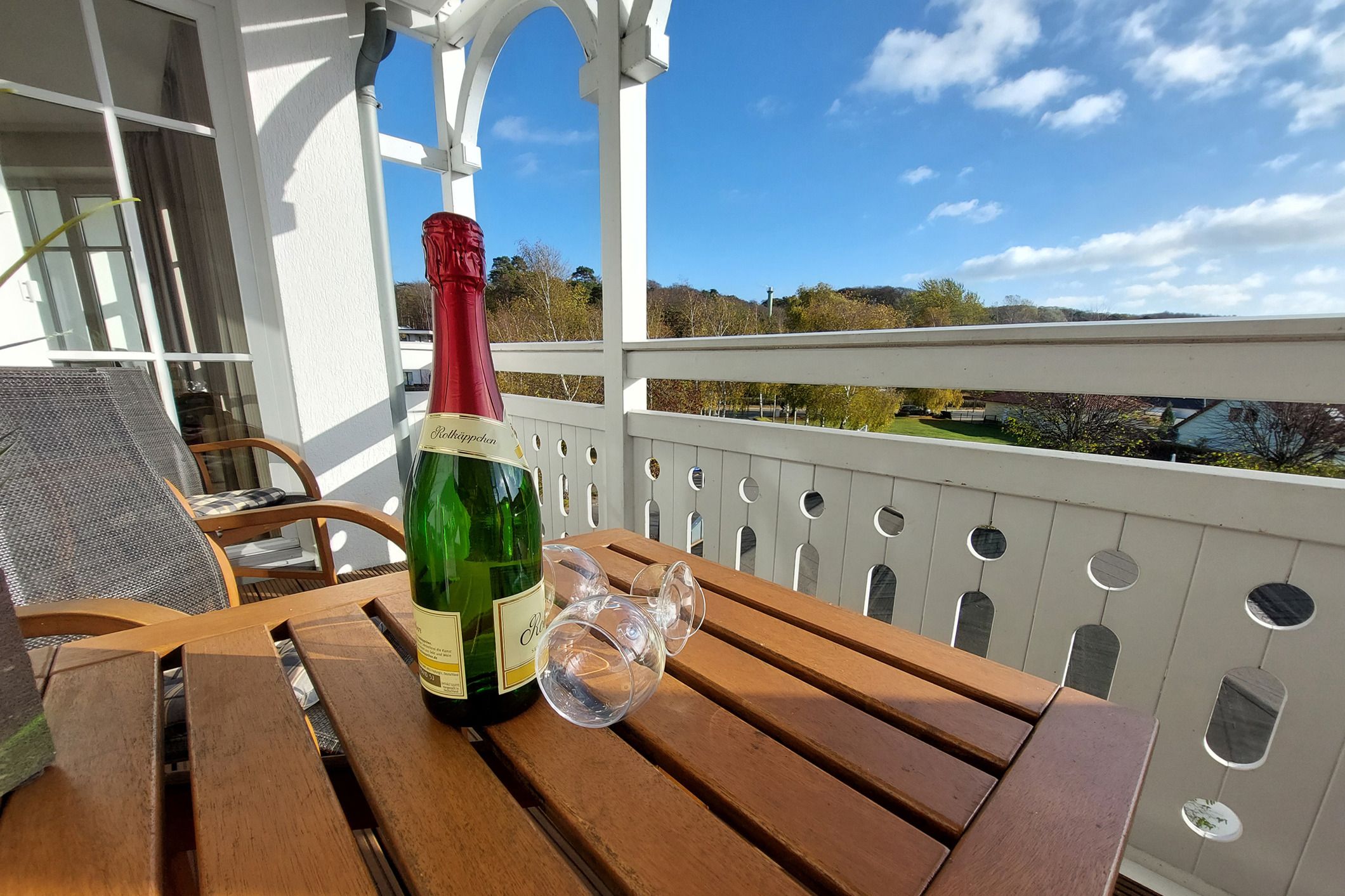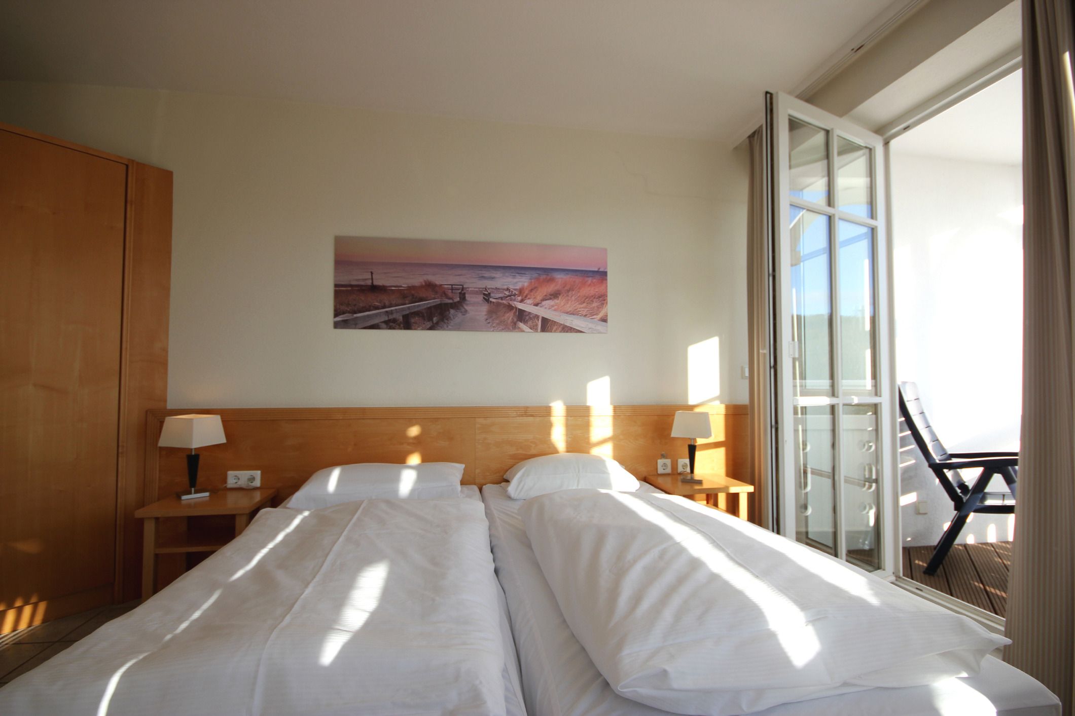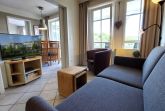 Ihre hochmodern ausgestattete 2-Zimmer Nichtraucher-Ferienwohnung 60RB644 befindet sich im Haus Mönchgut im Seepark Sellin. Sie ist ca. 52 qm groß und befindet sich im 2. Obergeschoss. Bis zu 4 Personen können sich gleich über zwei Balkone in süd-östlicher Richtung freuen. Im lichtdurchfluteten Wohnraum haben Sie neben dem gemütlichem Schlafsofa, welches Platz für die 3. u. 4. Person bietet, einen direkten Zugang zum Balkon. Der Flachbild-TV samt DVD-Player befindet sich auf einem Rollenregal, sodass er flexibel sowohl vom Wohn- als auch vom Essbereich nutzbar ist.