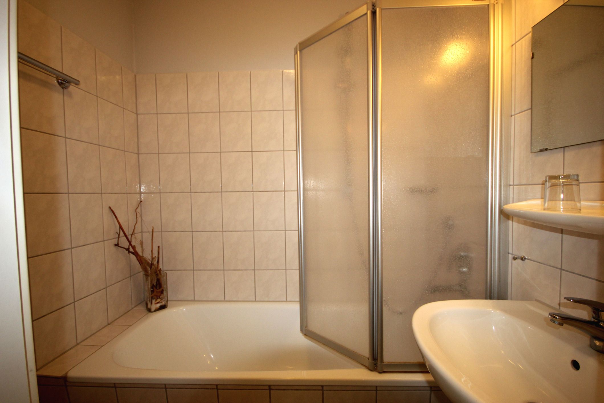 Im separaten Schlafzimmer mit Doppelbett und Kleiderschrank befindet sich der zweite Zugang zum anderen Balkon. Ein Badezimmer mit Badewanne inklusive Duschvorrichtung, Waschtisch, sowie eine separate Toilette steht Ihnen zur Verfügung.