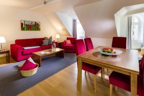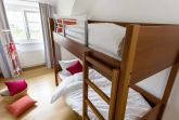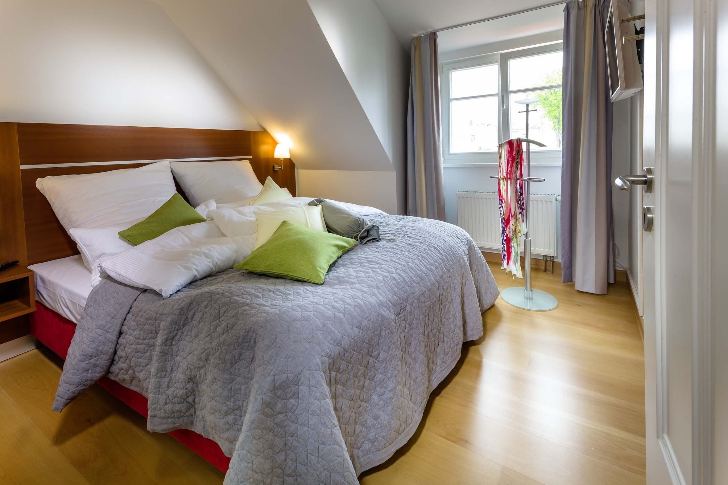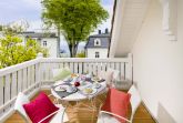 Ihre Ferienwohnung 32RB7 ist liebevoll eingerichtet mit gemütlicher Sitzecke im Erker sowie einem über die Küche erreichbaren Balkon von dem Sie einen kleinen Meerblick haben. Die Wohnung befindet sich im 2.Obergeschoß, hat eine Größe von ca. 98 qm und ist bis 6 Personen belegbar. Neben dem schön eingerichteten Wohnraum gibt es eine separate Küche, zwei separate Schlafräume, ein Badezimmer mit Waschtisch, Dusche und WC sowie eine separate Gästetoilette.Zur Ausstattung der Wohnung gehört außerdem ein Safe. In einem Schlafraum befindet sich ein Doppelbett und ein Kleiderschrank. Der zweite Schlafraum verfügt über ein Doppelstockbett. Im Wohnbereich finden Sie eine gemütliche Sitzgruppe mit Schlafsofa, Essplatz, TV und Telefon. Die Küche ist mit Geschirrspülmaschine, Ceranfeld, Backofen, Kühlschrank und diversen Kleingeräten komplett ausgestattet. Ein PKW-Stellplatz steht Ihnen direkt am Haus zur Verfügung.