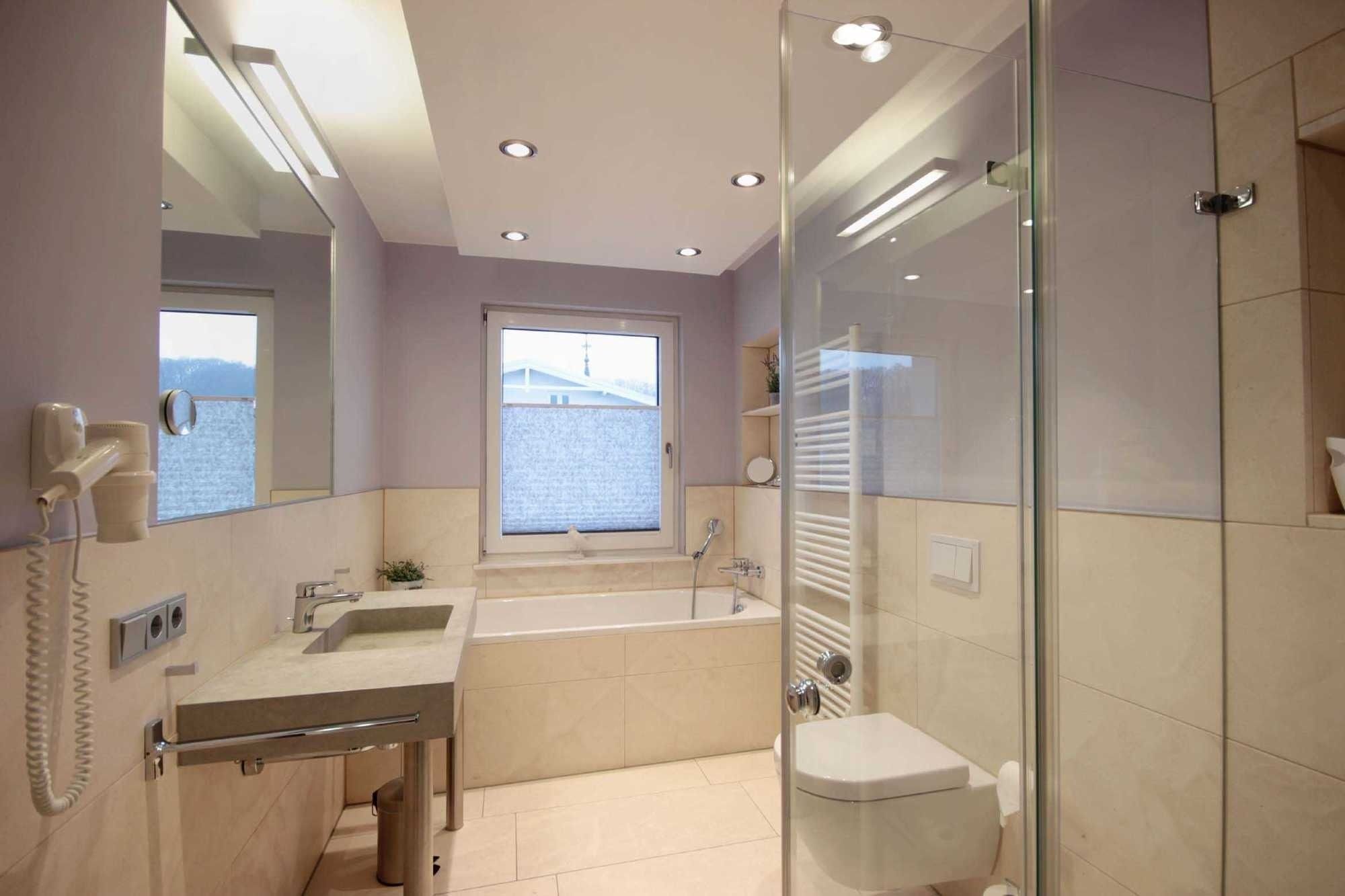 Der möblierte Süd-Westbalkon ist vom Wohnzimmer aus begehbar. Beide Natursteinbäder verfügen jeweils über eine ebenerdige Dusche, WC sowie Waschtisch. Eine Badewanne, Handtuchtrockner sowie ein fest installierter Fön finden Sie im Tageslichtbad vor.