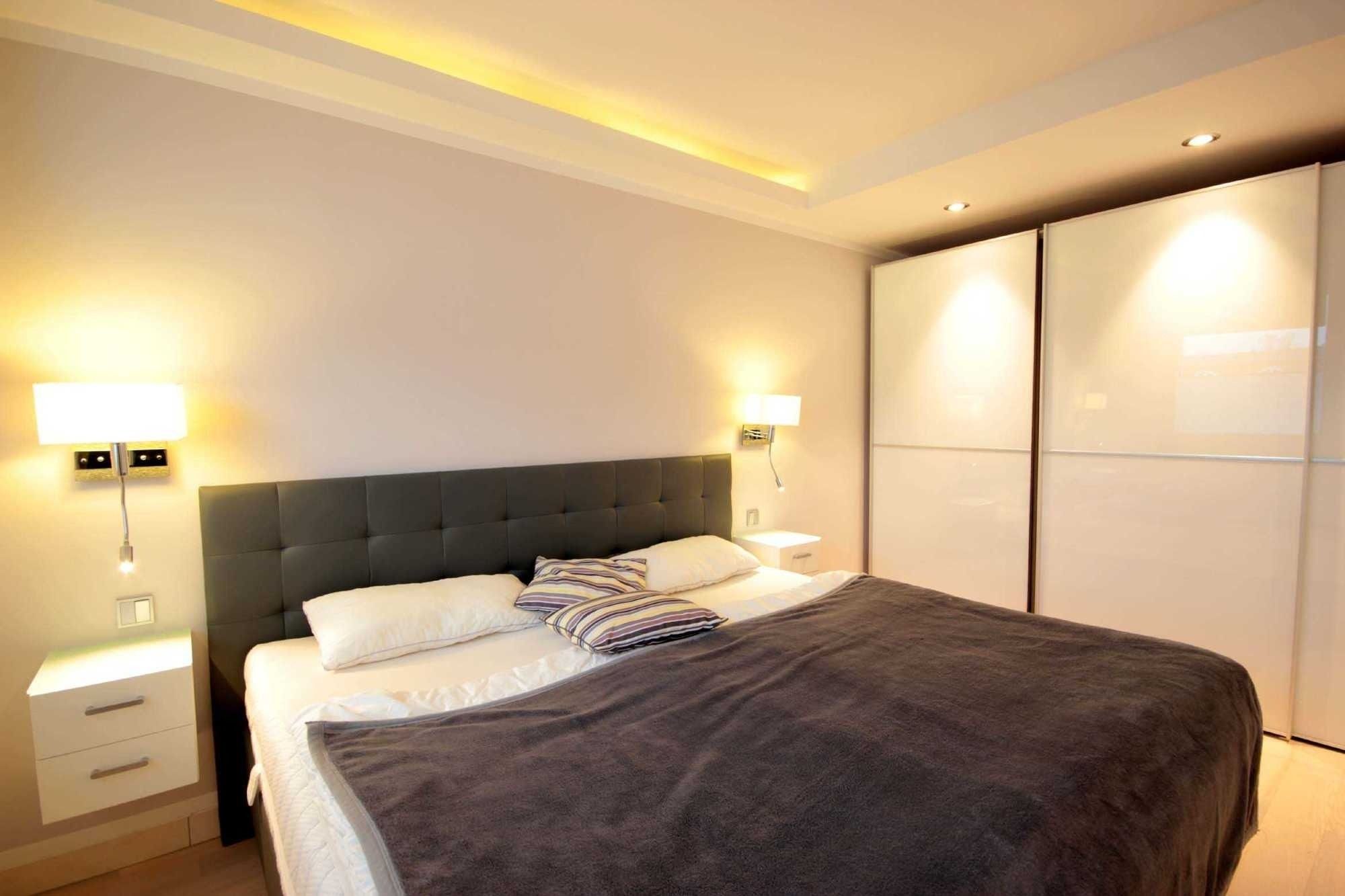 Der erste Schlafraum verfügt über ein komfortables Boxspringbett mit einer großzügigen Liegefläche von 2,00m x 2,00m sowie einem geräumigen Kleiderschrank.