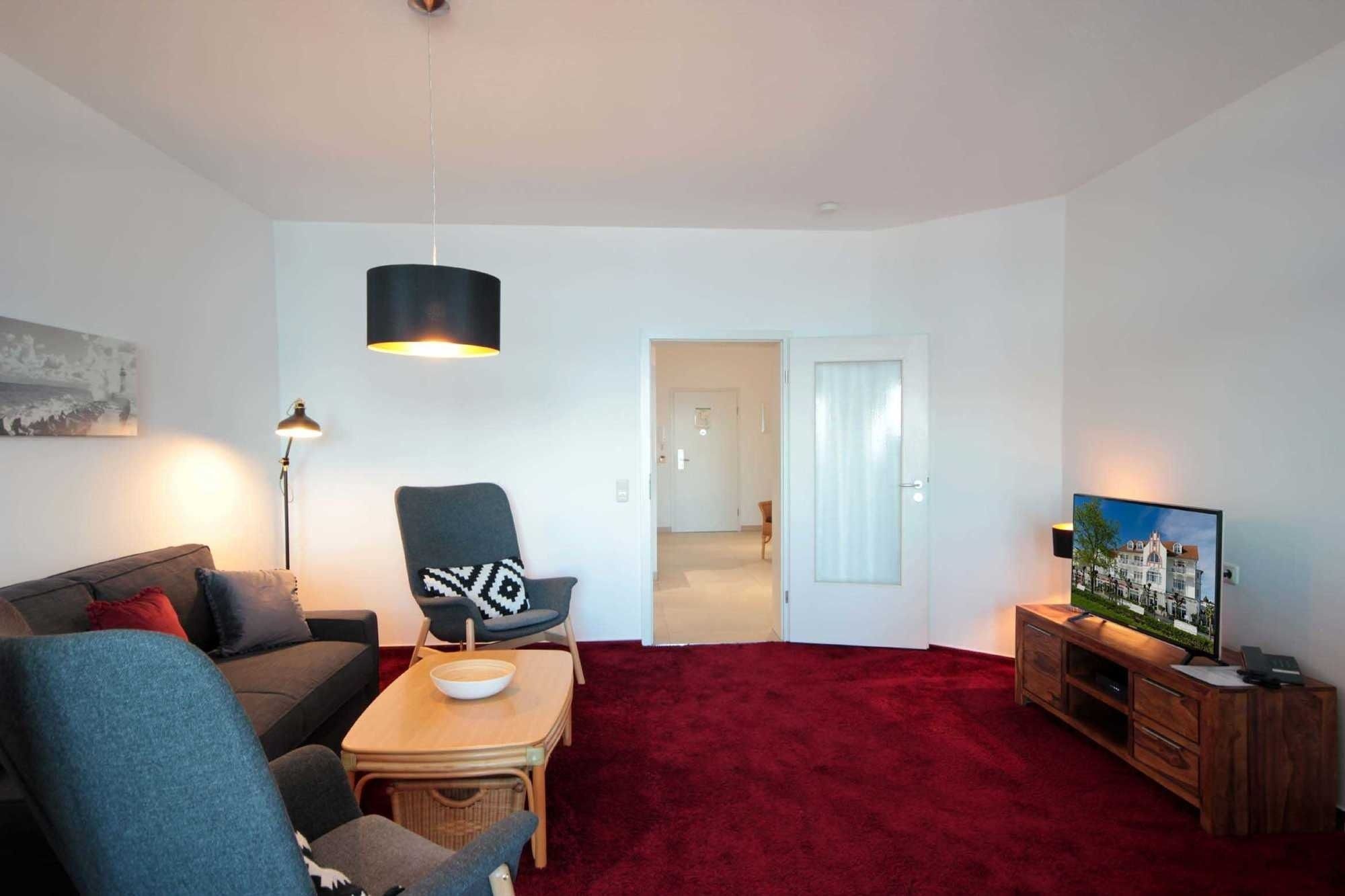 Ihre moderne und großzügige 2-Zimmer Meerblick-Ferienwohnung 225RB23 befindet sich im 2. Obergeschoss, ist ca. 68 qm groß und für bis zu 6 Personen gut geeignet. Neben dem Wohnbereich mit Schlafsofa, auf dem die 3. und 4. Person gut schlafen können, gehört ein Flachbild TV sowie WLAN zur Nichtraucherwohnung. Der Wohnbereich ist optisch vom Wohnerker mit Essbereich, Meerblick und zusätzlicher Schlafcouch für 2 weitere Personen getrennt. Vom separaten Schlafzimmer mit Doppelbett und zusätzlichem TV gelangen Sie auf den Balkon und können einen wundervollen Meerblick genießen. Ebenfalls gibt es eine voll ausgestattete integrierte Küchenzeile mit Geschirrspüler, Nespresso-Maschine, Backofen, Wasserkocher, Toaster und Kaffeemaschine nutzen. Das Badezimmer erwartet Sie mit Waschtisch, WC und Dusche. Haustiere sind herzlich willkommen.