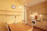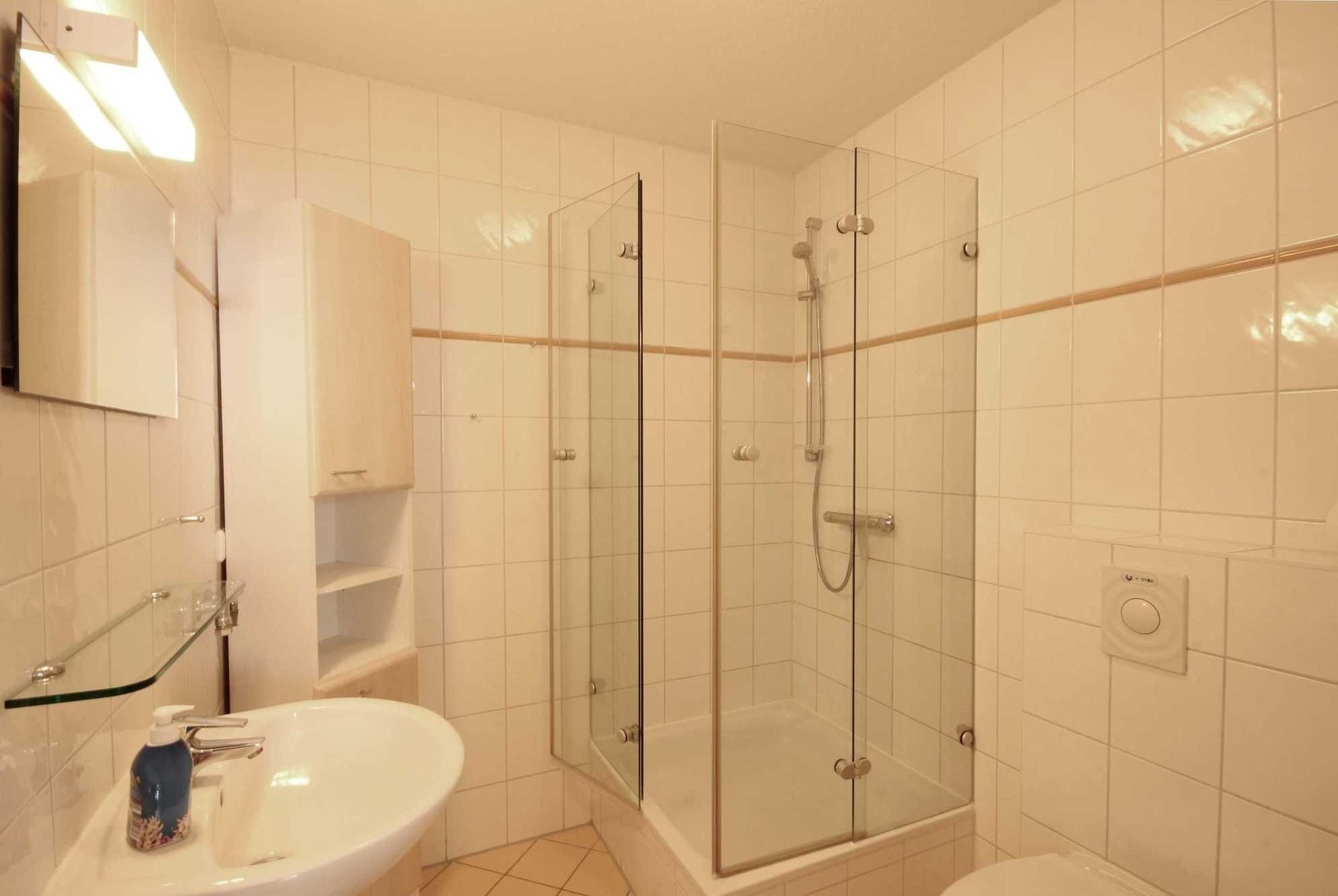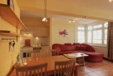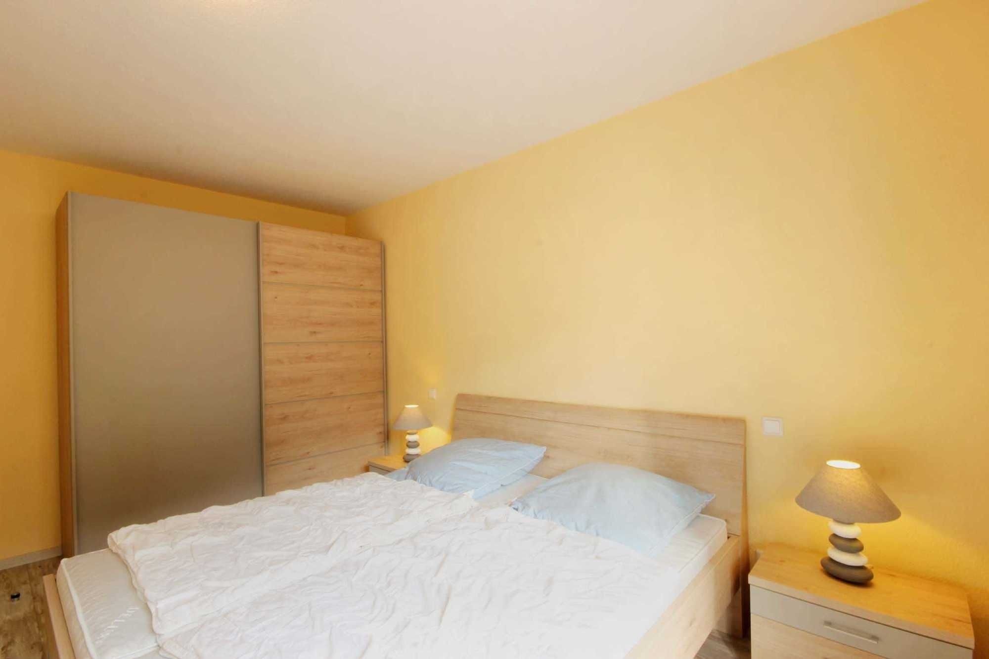 Die Wohnung 9RB33 befindet sich im Erdgeschoss der Villa Bernstein am Klünderberg 33. Die 3-Zimmer-Wohnung hat eine Größe von 56 m² und ist mit bis zu 6 Personen belegbar. Neben dem Wohnzimmer mit offener Küche gibt es 2 Schlafzimmer und ein Duschbad mit Waschtisch und WC. Ein Schlafraum ist mit einem Doppelbett und Kleiderschrank ausgestattet. Das 2. Schlafzimmer verfügt über eine Schlafcouch. Das Wohnzimmer verfügt ebenfalls über eine Schlafcouch, einen Esstisch, Flachbildfernseher, WLAN und Radio. Vom Wohnzimmer aus gelangen Sie auf die kleine Südterrasse. Die Küchenzeile ist mit Backofen, E-Herd mit 4 Kochplatten, Geschirrspüler, Kaffeemaschine, Wasserkocher und Toaster perfekt ausgestattet.