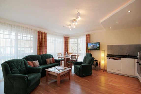 Ihre luxuriöse 3-Raum Ferienwohnung 90230 hat eine Größe von ca. 70 qm und ist für max. 6 Personen eingerichtet. Sie befindet sich im Erdgeschoss und verfügt über einen großen Südwestbalkon, von dem Sie einen wunderschönen Blick auf den Schmachter See haben. Die Ferienwohnung ist aufgeteilt in einen gemütlichen Wohnraum, eine offene moderne Markeneinbauküche mit Granitarbeitsplatte, zwei Schlafzimmer, ein Duschbad mit Waschtisch und WC sowie eine separate Gästetoilette. Das Wohnzimmer ist mit einem Essplatz und einer Sitzgruppe, die auch eine Schlafgelegenheit für die 5. und 6. Person bietet, möbliert. Die technische Ausstattung beinhaltet einen Flachbildfernseher und eine Musikanlage. Außerdem ist ein kostenfreier Internetzugang nutzbar. Die Küche ist mit Kühlschrank, Backofen, Ceranfeld, Geschirrspüler und weiteren Elektrogeräten komplett ausgestattet. Ein Schlafzimmer verfügt über ein Doppelbett und einen Kleiderschrank, das 2. Schlafzimmer über eine Schlafcouch.