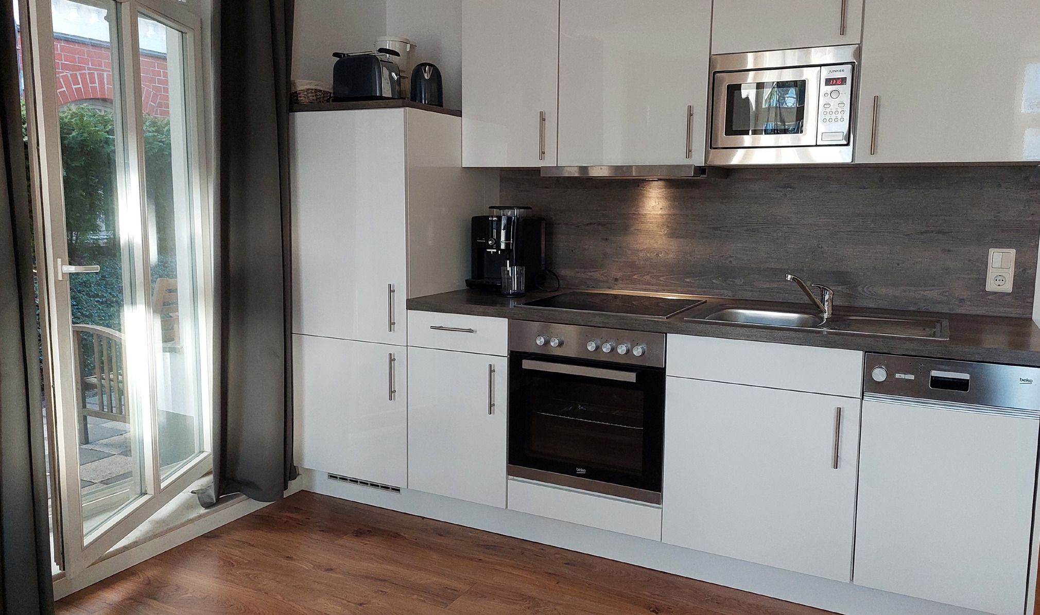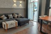 Dieser verfügt eine voll ausgestattete Küchenzeile samt Ceranfeld, Backofen, Geschirrspüler, Microwelle, Filterkaffeemaschine, Kaffeevollautomat sowie diversen Kleingeräten. Neben dem gemütlichen Essbereich lädt auch ein neues Sofa (samt Schlaffunktion) zum Verweilen ein.