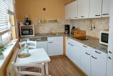 Die separate Küche ist komplett ausgestattet mit einem Geschirrspüler, einer Kaffeemaschine, einer Kaffeekapselmaschine, einem Wasserkocher, Toaster, Mini-Backofen, Mikrowelle, Cerankochfeld, Kühlschrank mit kleinem Gefrierfach sowie umfangreichem Kücheninventar.