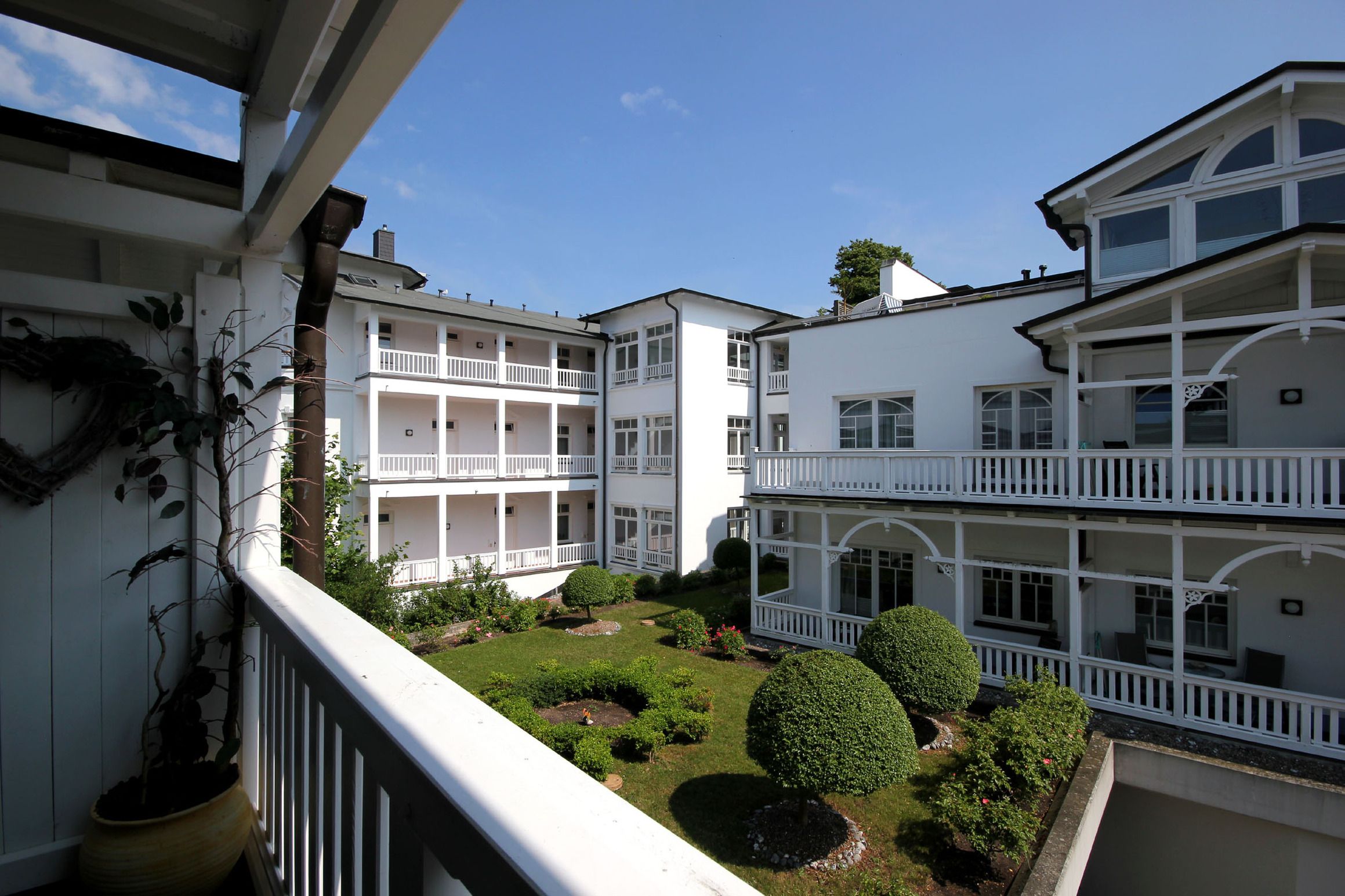 Von dort aus haben Sie auch Zugang zum möblierten Balkon Richtung Nordosten mit Blick auf den grünen Innenhof.