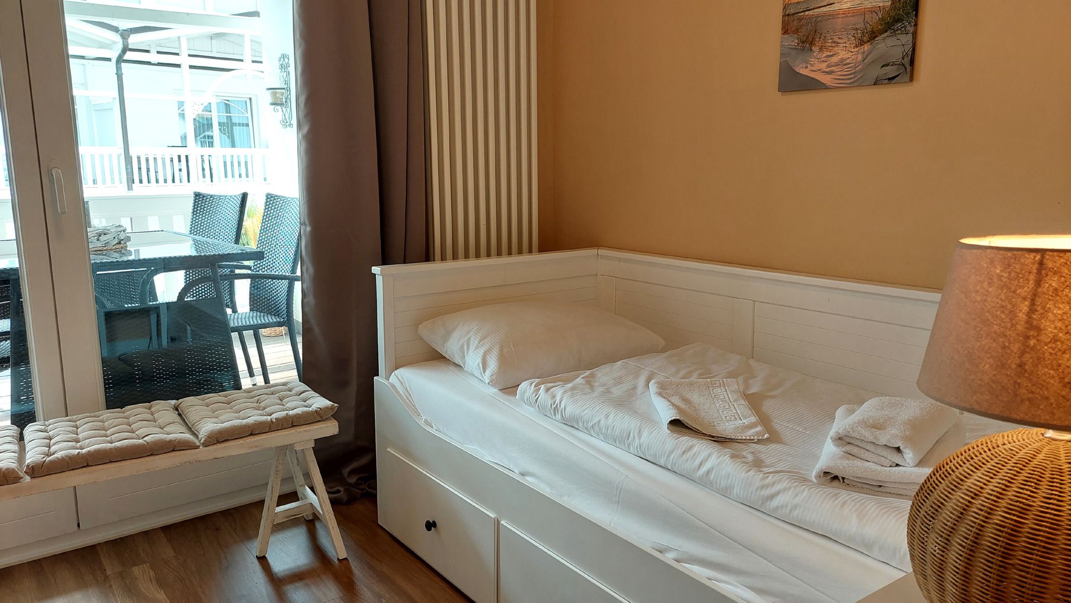 Die familienfreundliche 3,5-Zimmer Nichtraucherwohnung 209RB567 wurde 2023 komplett saniert und neu eingerichtet. Sie befindet sich im 1. Obergeschoss in der Dependance der Villa Gudrun, ist ca. 89 qm groß.