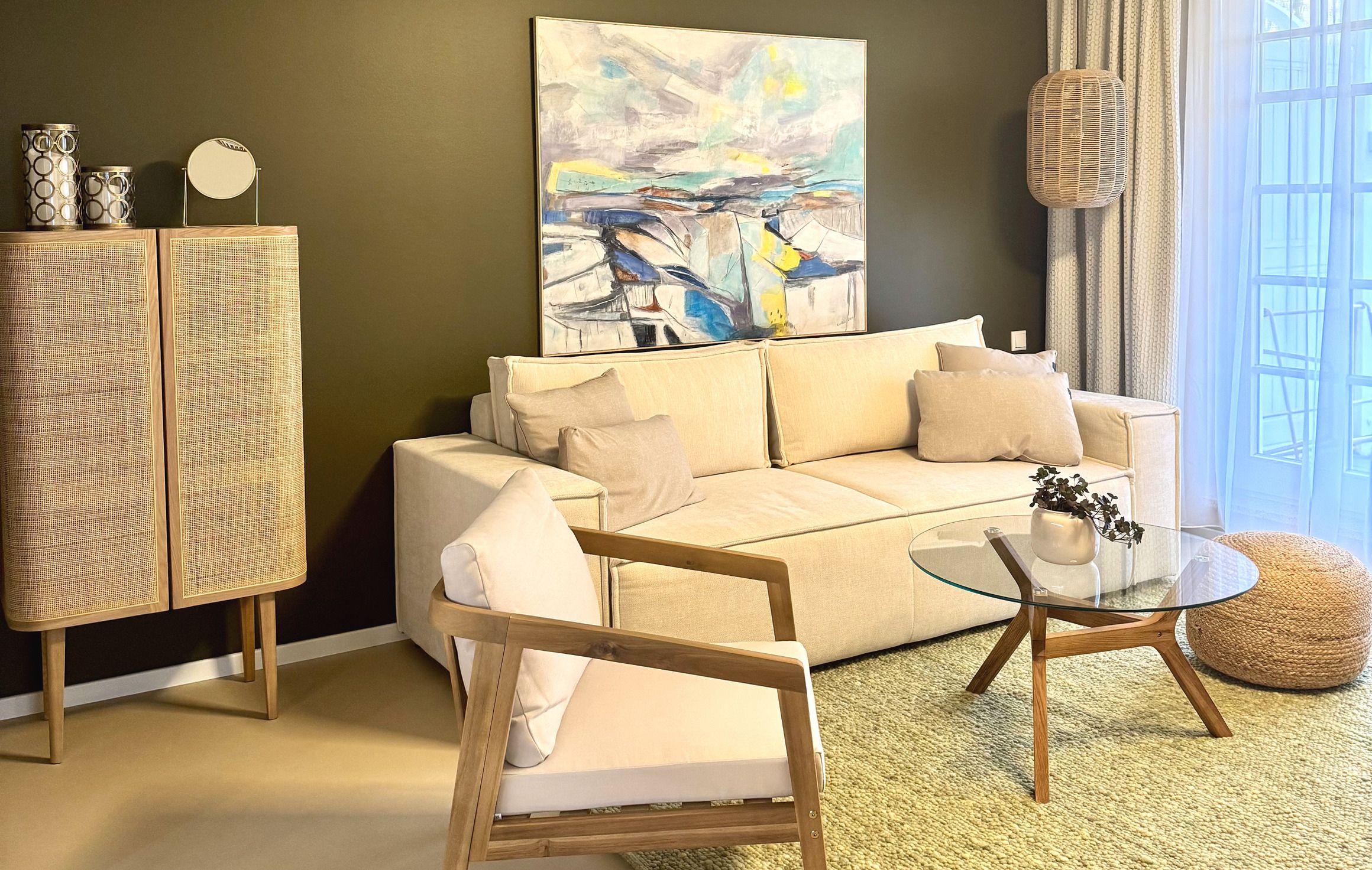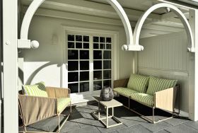 Vom Wohnbereich gibt es den Zugang zur möblierten Terrasse, welche sowohl eine Teilüberdachung als auch schöne Abendsonne verspricht.