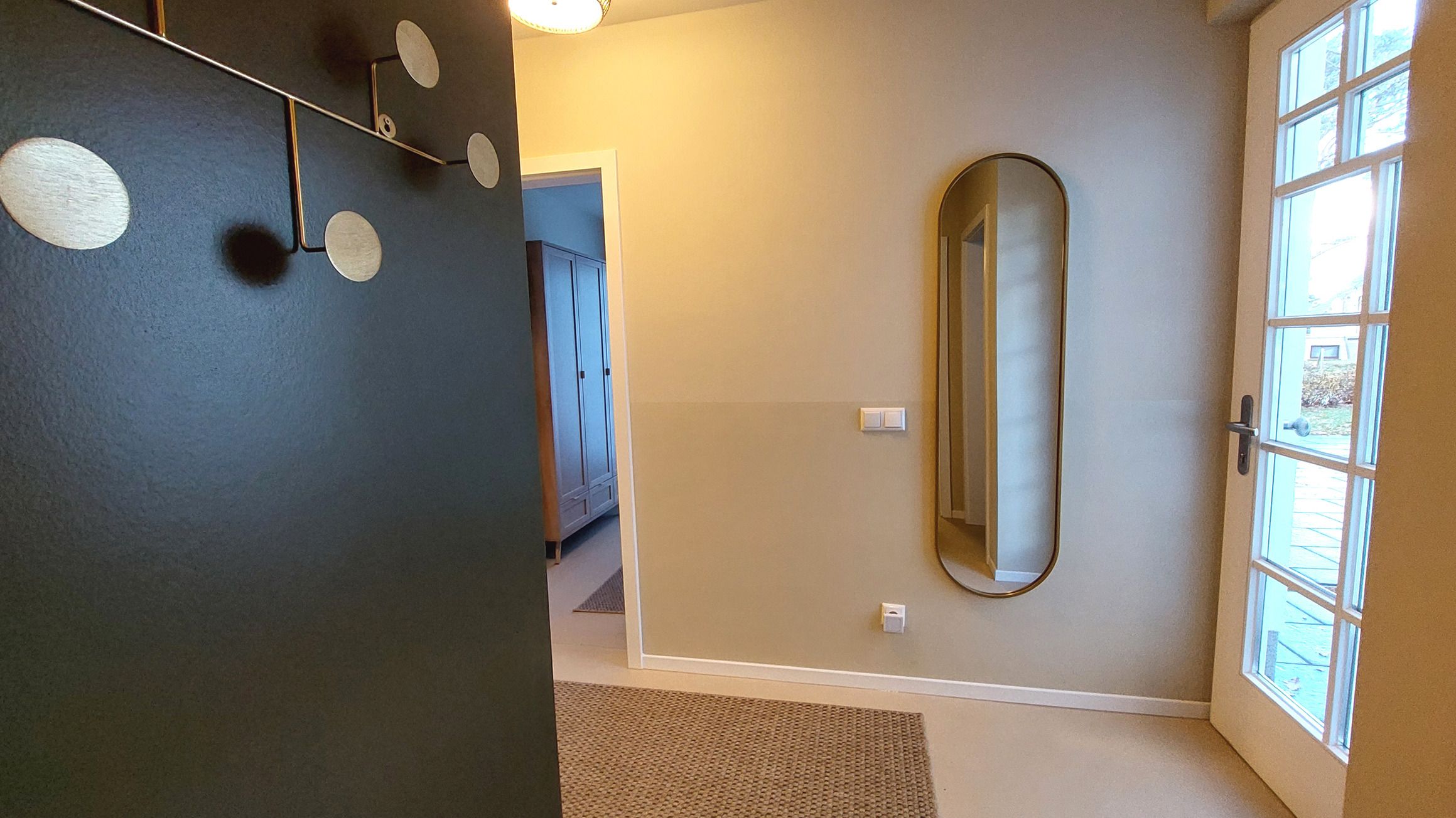 Über eine zweite Wohnungstür gelangen Sie in den Gemeinschaftsbereich der Villa mit schnellem Zugang zum Wasch- und Fahrradabstellraum.