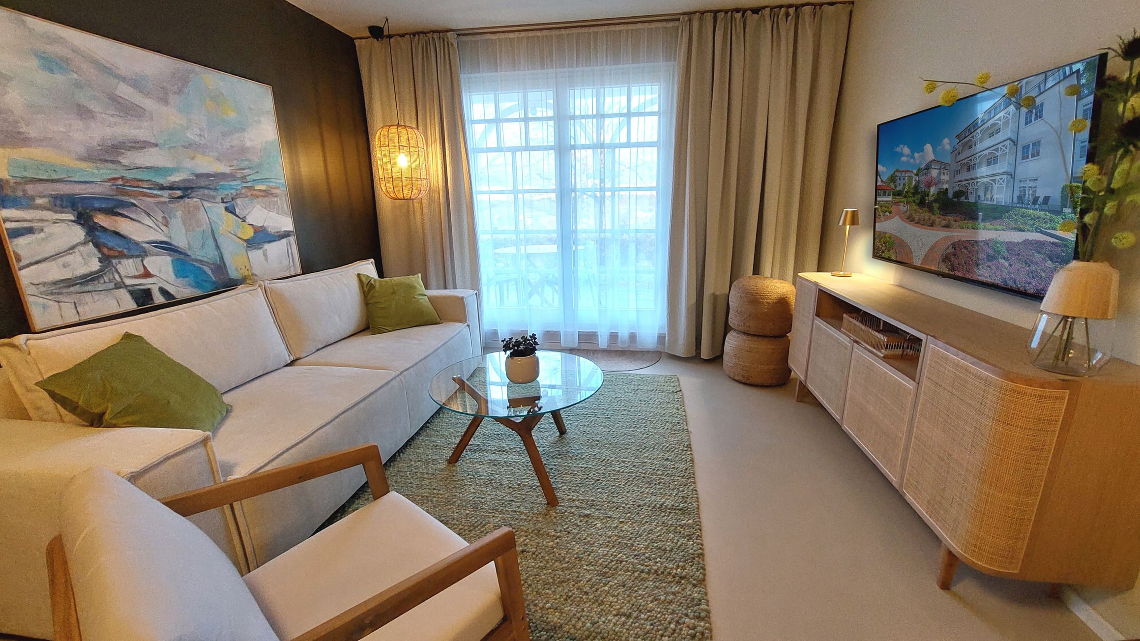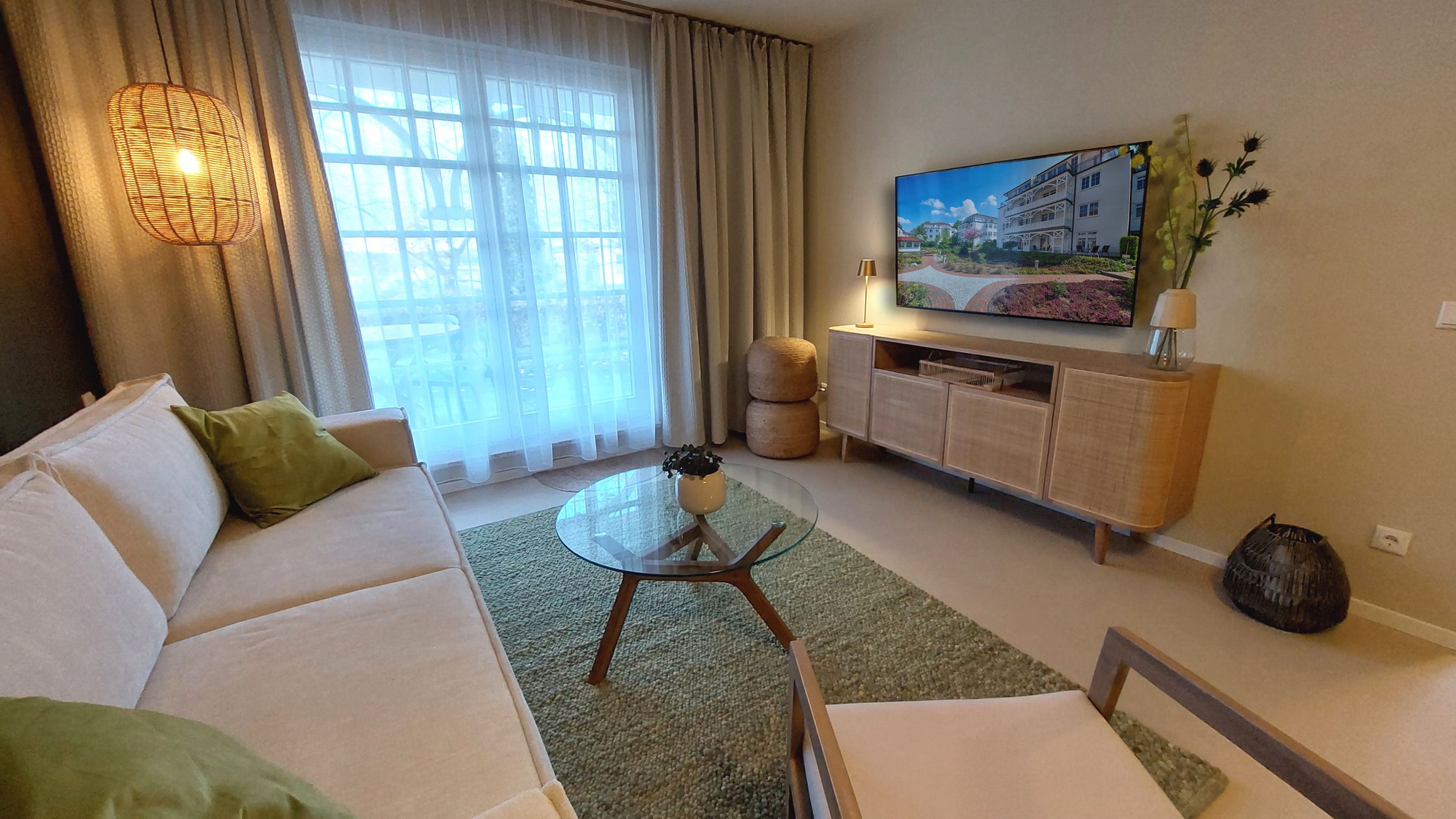 Die gemütliche Sitzlandschaft läd zum Verweilen ein und bietet bei Bedarf auch eine Schlaffunktion für eine dritte Person. Zudem garantiert der große Smart-TV (Free-TV ist via Joyn verfügbar) gute Unterhaltung für jeder Wetterlage.