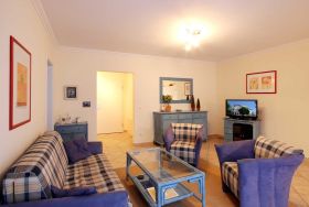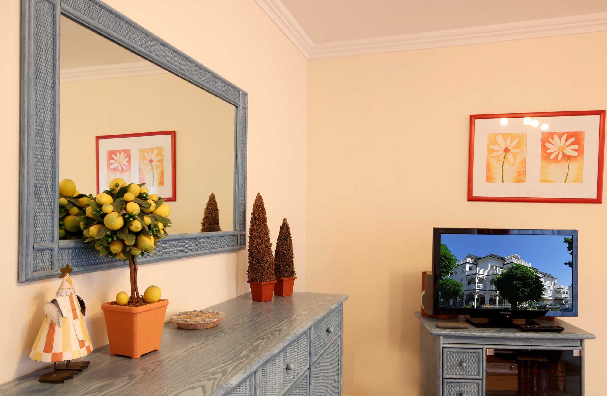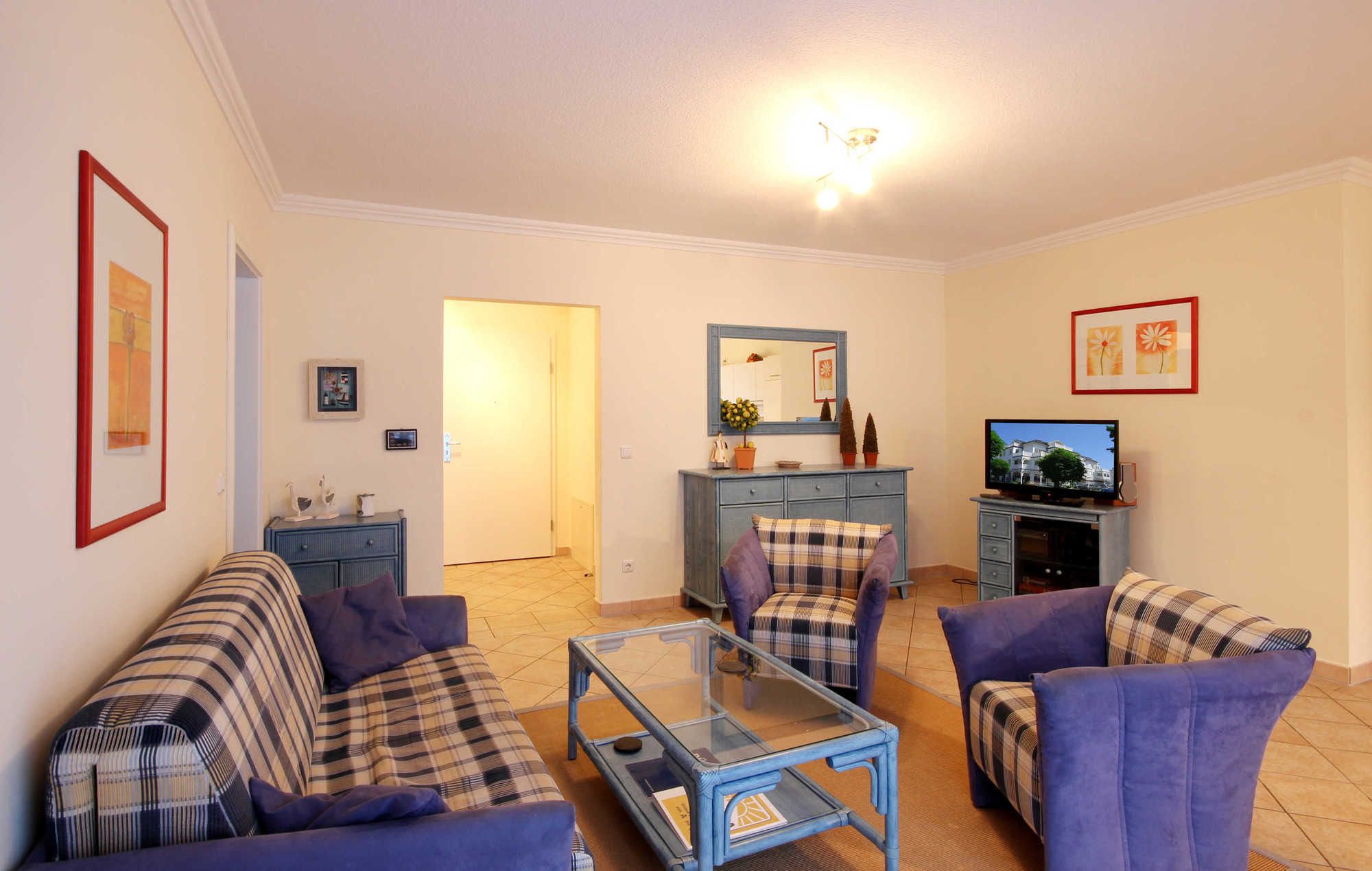 Neben dem schön eingerichteten Wohnraum mit integrierter Wohnküche und Essbereich, gibt es einen separaten Schlafraum und ein Badezimmer mit Waschtisch, Dusche, Haartrockner, WC und Handtuchheiztrockner. Im Schlafraum befindet sich ein Doppelbett und ein Kleiderschrank. Im Wohnraum können auf dem Schlafsofa weitere zwei Personen schlafen. Sie finden dort auch einen Flachbild-TV und einen Radio/CD-Spieler. Die Küche ist mit Geschirrspülmaschine, Backofen, Cerankochfeld, Kühlschrank und diversen Kleingeräten komplett ausgestattet.