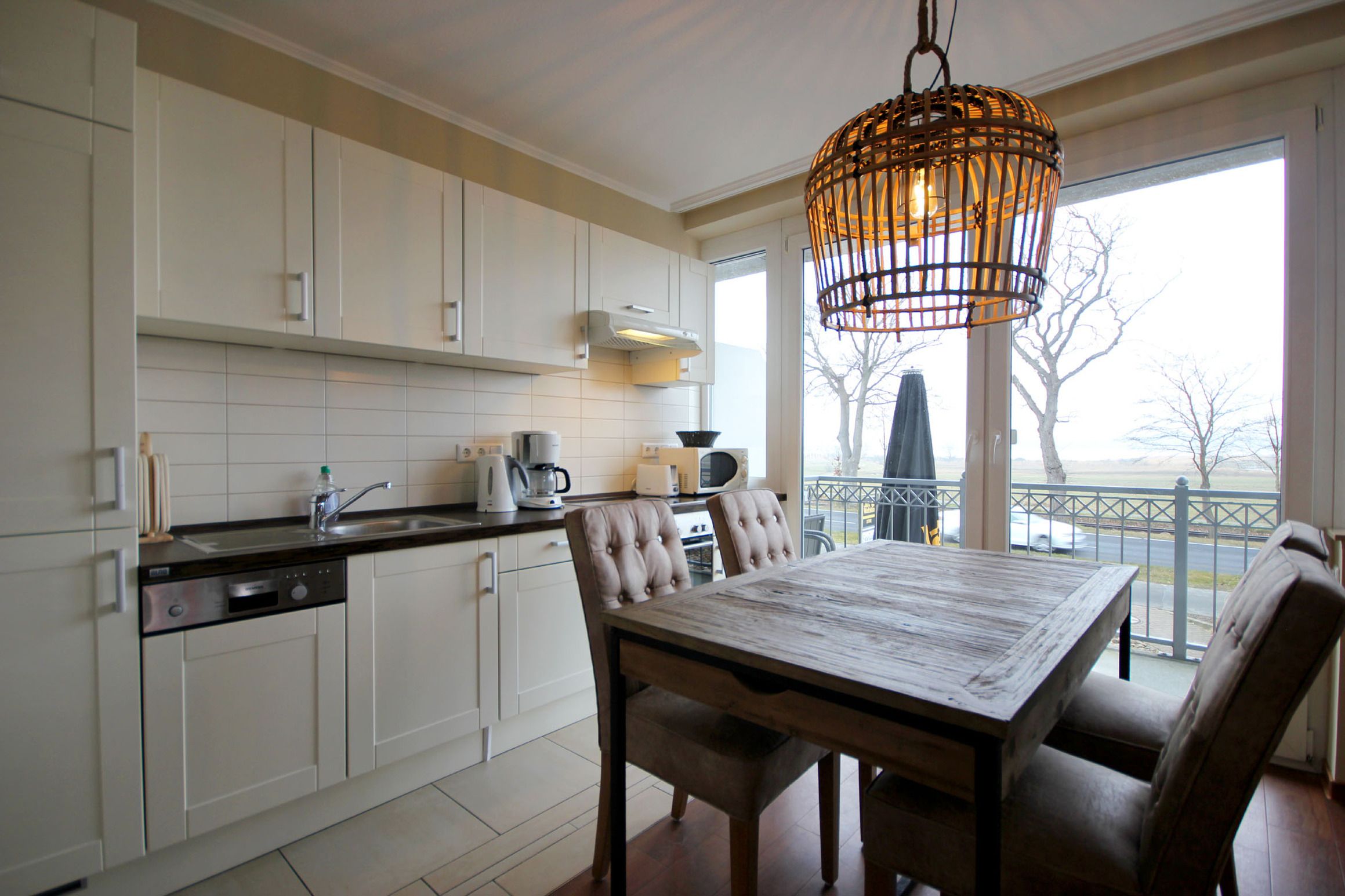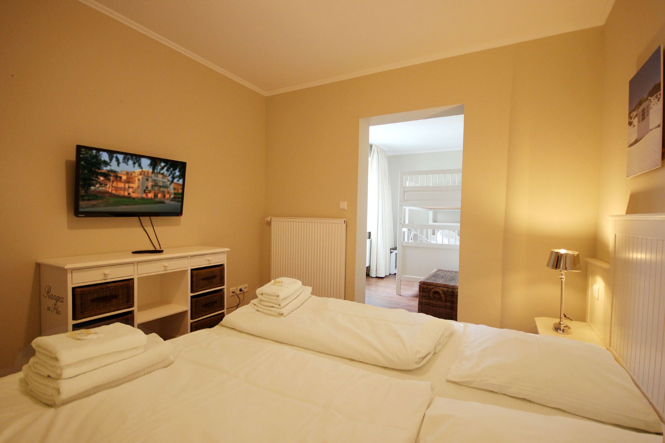 Ihre 3-Zimmer Ferienwohnung 65RB5 Meeresbrise befindet sich im Erdgeschoss, wohnseitig 1. Obergeschoss und ist ca. 51 qm groß sowie für bis zu 4 Personen gut geeignet. Neben dem gemütlichen Wohnbereich mit Zugang zum Balkon mit Blick auf den Selliner See, gehört eine Sitzecke mit Schlaffunktion, ein Essbereich, Flachbild TV sowie WLAN zur Nichtraucherwohnung. Im Schlafzimmer erwartet Sie ein Doppelbett, ein zusätzlicher TV sowie ein Kleiderschrank. Per offenem Durchgang erreichen Sie von dort auch das zweite Schlafzimmer, welches über ein Etagenbett verfügt. Zudem können Sie eine voll ausgestattete und im Wohnbereich integrierte Küchenzeile mit Geschirrspüler, Backofen, Wasserkocher, Toaster, Kaffeemaschine sowie umfangreiches Küchengeschirr nutzen. Das moderne Badezimmer erwartet Sie mit Waschtisch, WC und Dusche. Einen Parkplatz sowie eine Fahrradunterstellmöglichkeit befinden sich direkt am Objekt.
