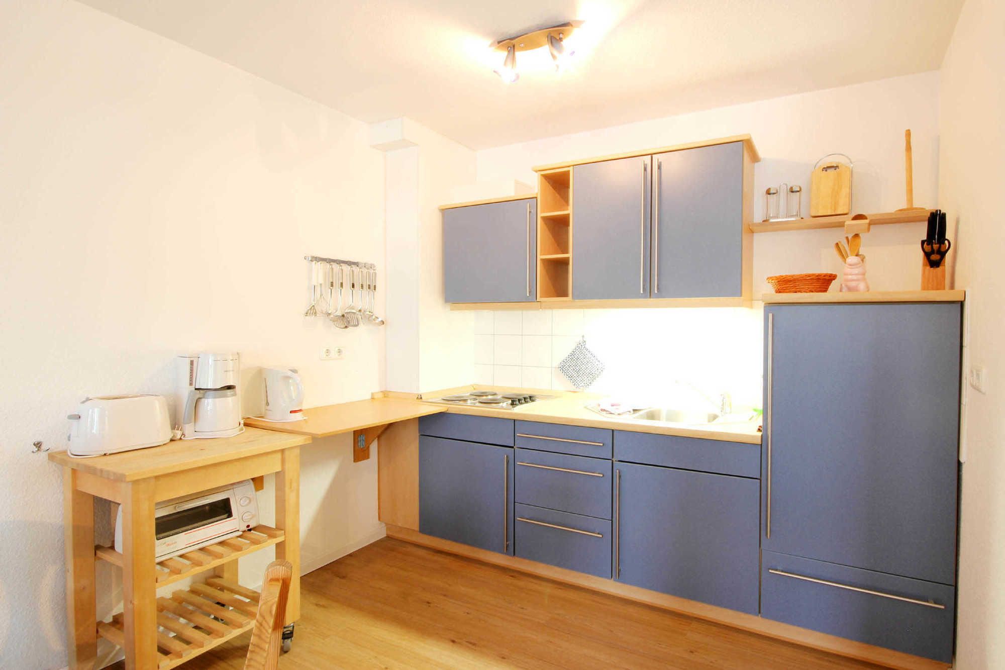 Ihre gemütliche 2-Zimmer Ferienwohnung 90295 ist ca. 55 qm groß und befindet sich im 1. Obergeschoss. Diese Wohnung teilt sich auf in ein Schlafzimmer mit Doppelbett und Kleiderschrank, ein Badezimmer mit Dusche, WC und Waschtisch sowie ein Wohnraum mit einer Schlafcouch, 2 Schwingsessel, TV, einer kleinen Musikanlage und separater Essecke. In der angrenzenden Küchenzeile können Sie einen Kühlschrank, Mini-Backofen, Kaffeemaschine, Toaster und Wasserkocher nutzen. Ebenso ist diese natürlich komplett mit Geschirr und diversen Kleinteilen ausgestattet. Zur Ferienwohnung gehört natürlich auch ein Süd-Balkon, der einen Blick auf die kleine Seitengasse und Nachbargrundstück bietet.