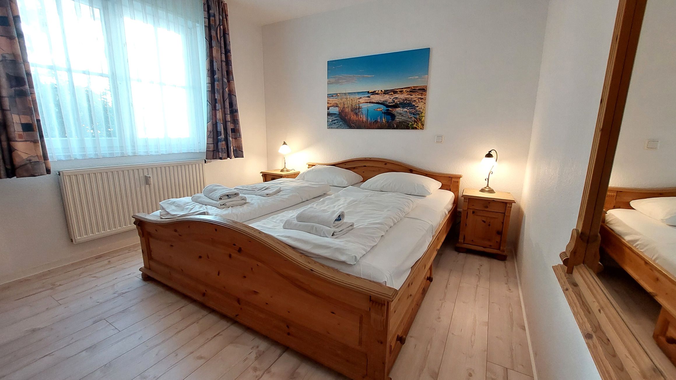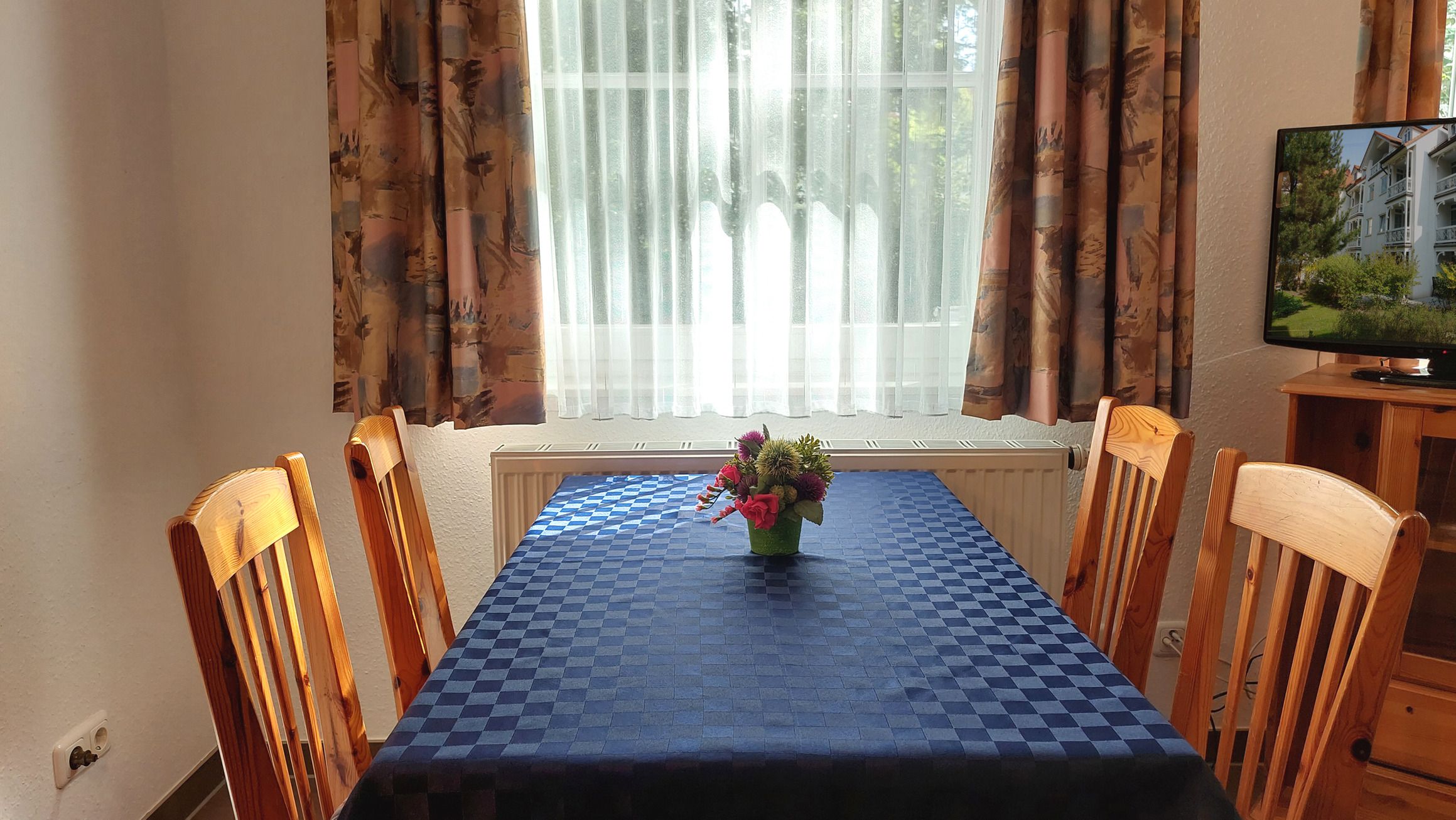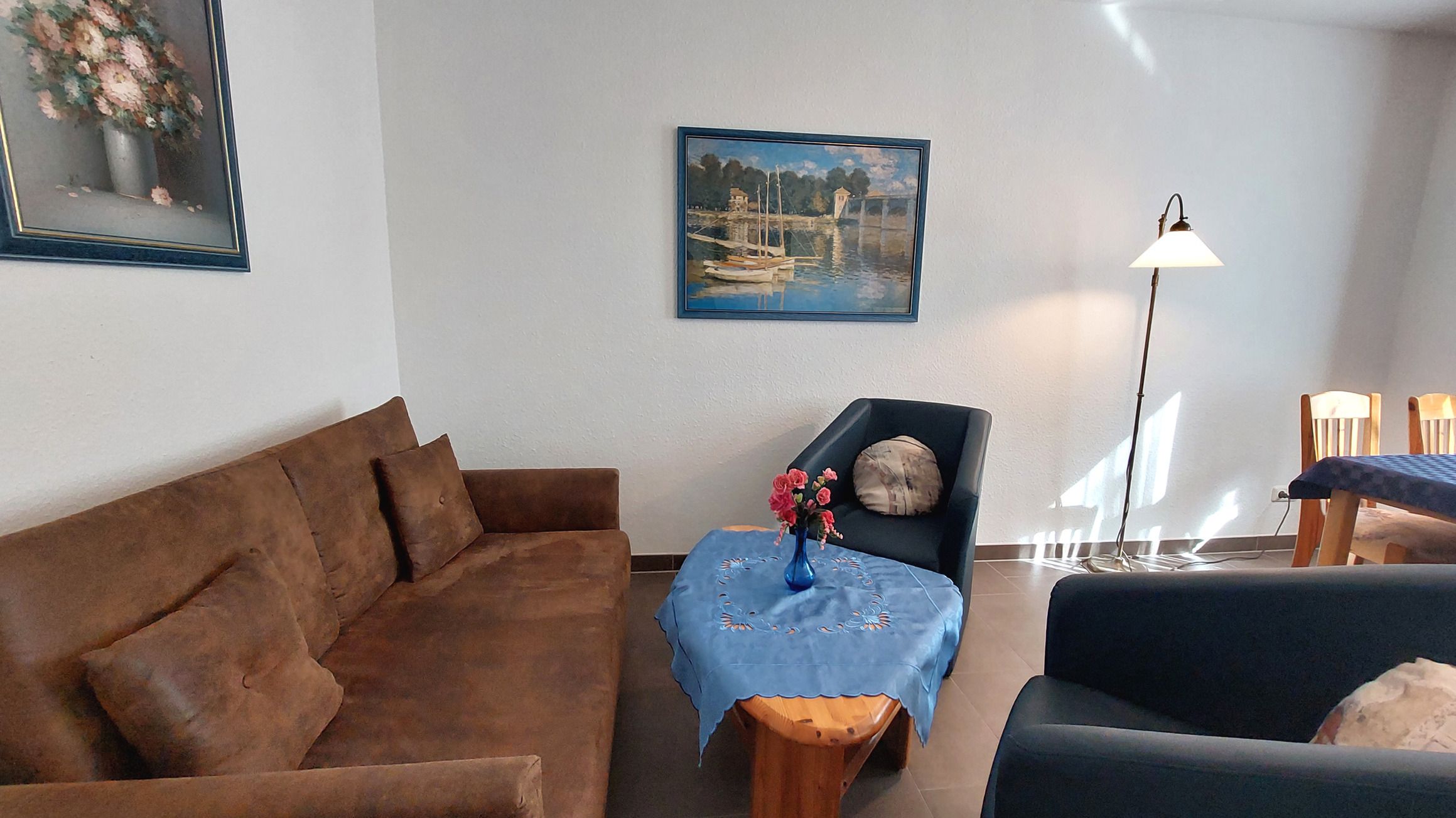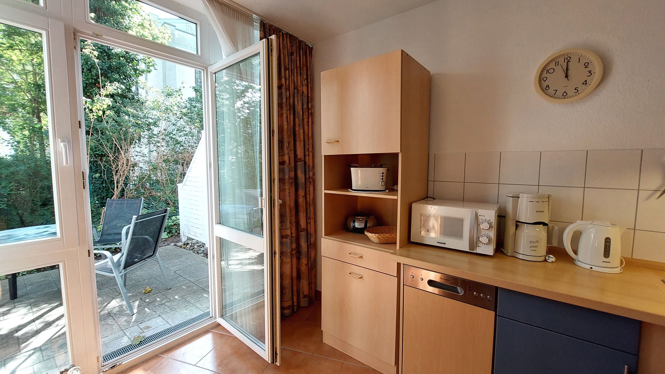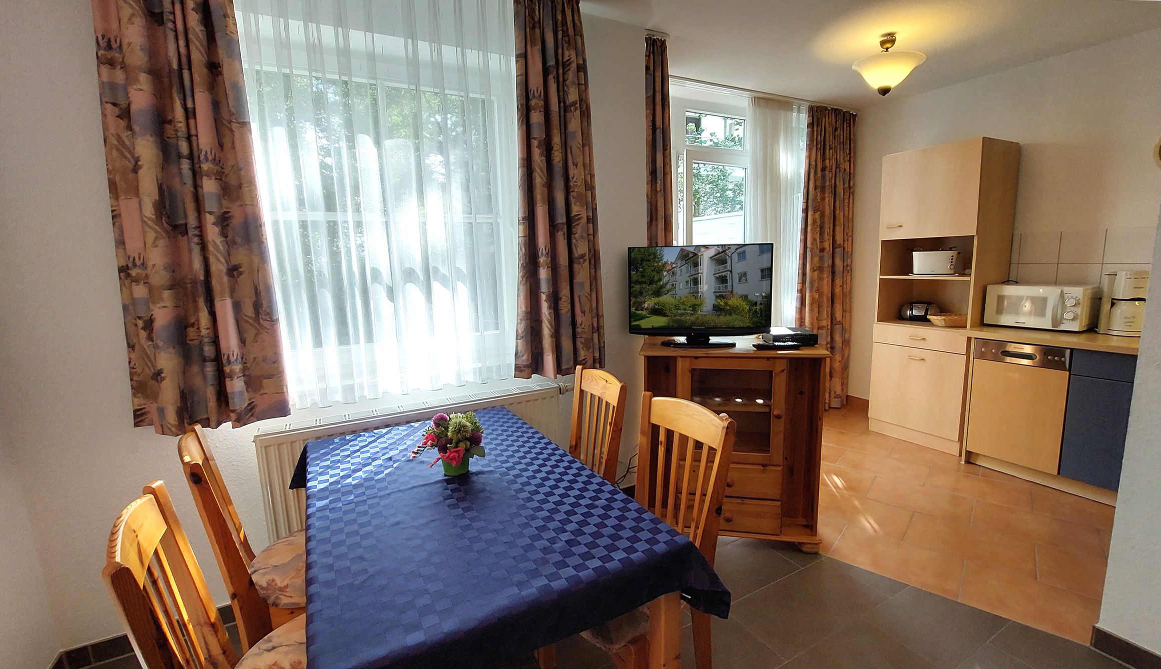 Die Wohnung ist mit verschiedenen Annehmlichkeiten ausgestattet, um Ihren Aufenthalt so angenehm wie möglich zu gestalten. Dazu gehören unter anderem eine Kaffeemaschine, eine Mikrowelle und eine Terrasse, auf der Sie die frische Luft und die Sonne genießen können. Die Unterkunft ist komplett rauchfrei und verfügt auch über einen Geschirrspüler und W-LAN. Für Ihre Unterhaltung steht ein Flachbild-TV zur Verfügung. Die offene Küche ist ideal, um gemeinsam Mahlzeiten zuzubereiten und gemütliche Abende zu verbringen. Auch für Familien ist die Ferienwohnung gut geeignet.