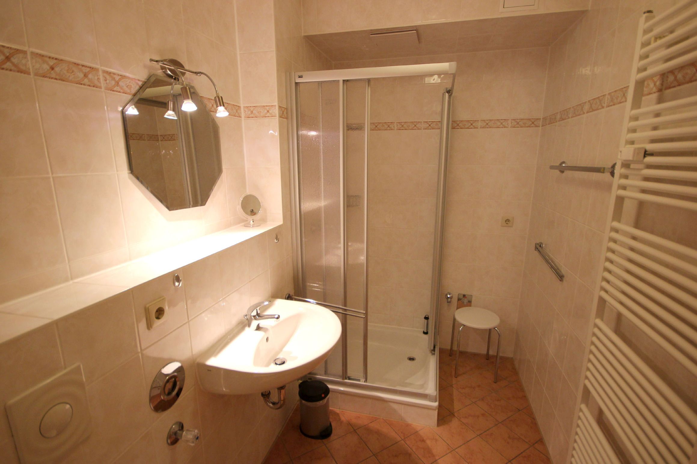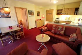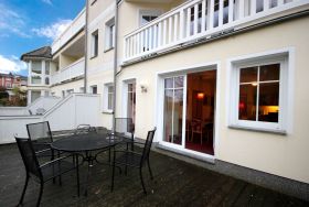 Ihre Nichtraucher-Wohnung 90801 hat eine Größe von ca. 54 qm und ist für bis zu 4 Personen eingerichtet. Sie befindet sich im Erdgeschoss des Hauses und verfügt über eine großzügige Terrasse in Richtung Westen, welche zum Sonnenbaden einlädt. Hier können Sie gemeinsam Essen und Verweilen. Die gemütlich eingerichtete Ferienwohnung verfügt über einen Wohnraum mit Blick in Richtung des Schmachter See´s sowie über eine ausziehbare Schlafcouch für die 3. und 4. Person, Essbereich und kompletter Wohnküche bietet Ihnen dazu ein separates Schlafzimmer mit Doppelbett, Kleiderschrank, Zugang zur Terrasse, ein Badezimmer mit Waschtisch, WC, Handtuchheizung, Fön, Kosmetikspiegel und Dusche. Die technische Ausstattung umfasst ein Flachbild-TV, Radio, Safe sowie einen WLAN-Anschluss. Die Küchenzeile ist mit Geschirrspüler, Cerankochfeld, Backofen, Kühlschrank mit Gefrierfach, Mikrowelle, Kaffeemaschine und Toaster komplett ausgestattet. Ein wohnungseigener Stellplatz steht Ihnen direkt am Haus zur Verfügung. Für die kleinen Gäste steht ein Hochstuhl sowie ein Kinderreisebett bereit.