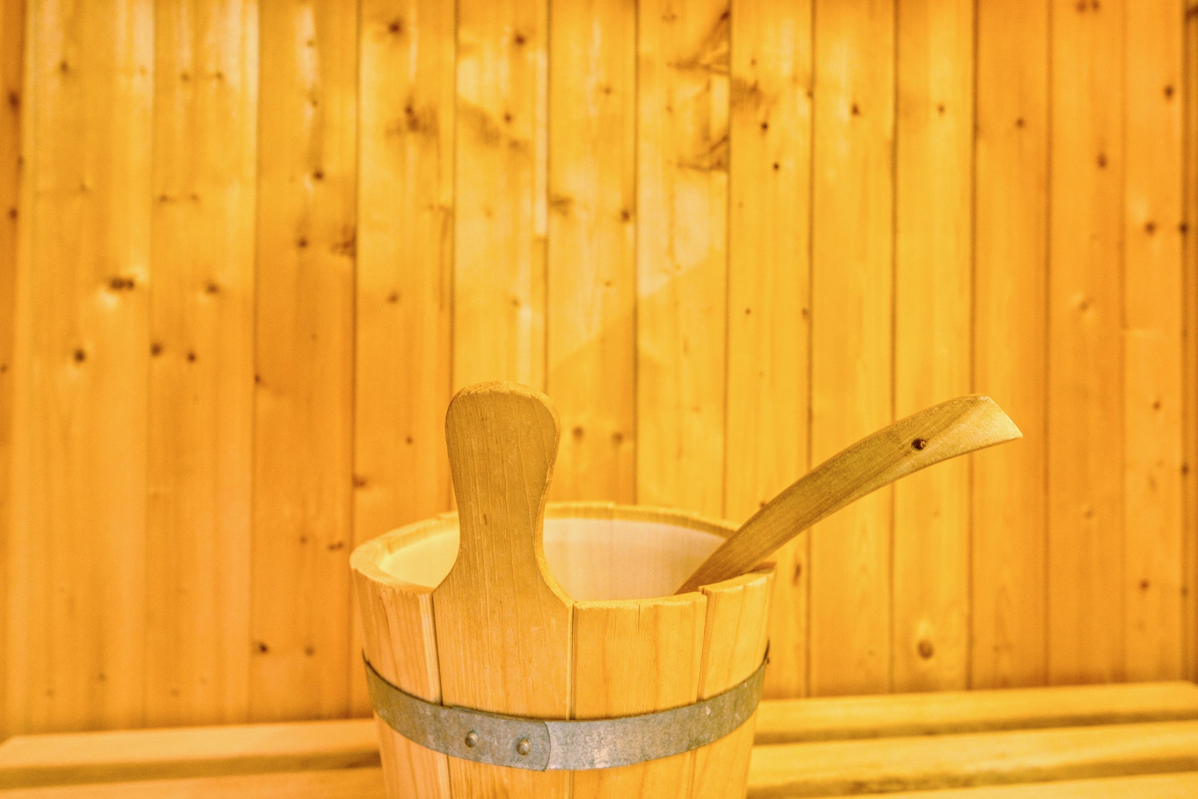 Badezimmer mit Dusche und Sauna. Fußbodenheizung in Wohnräumen vorhanden.