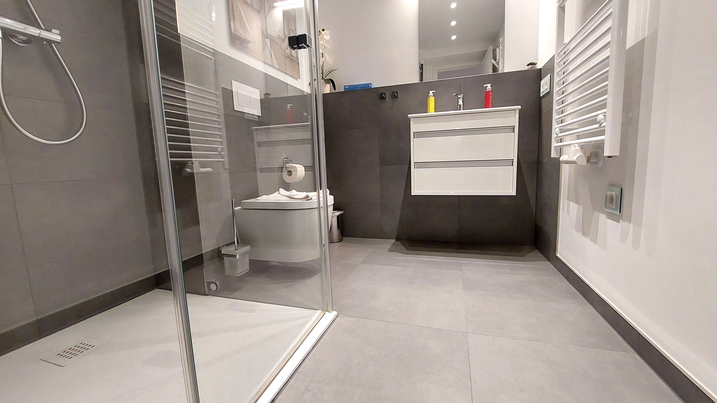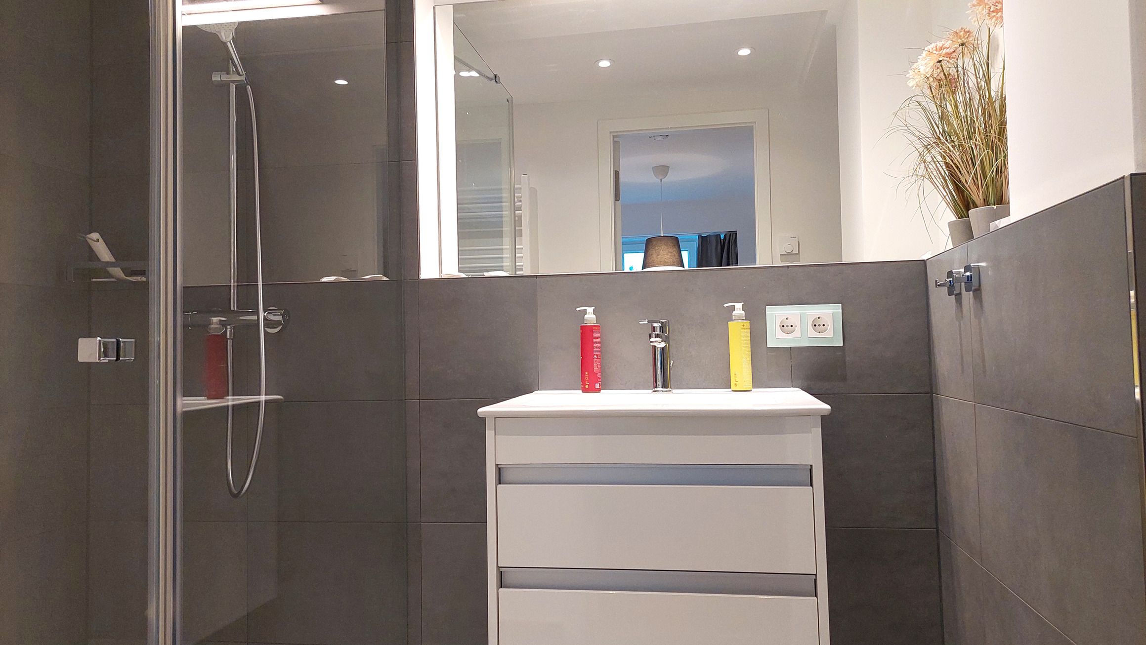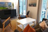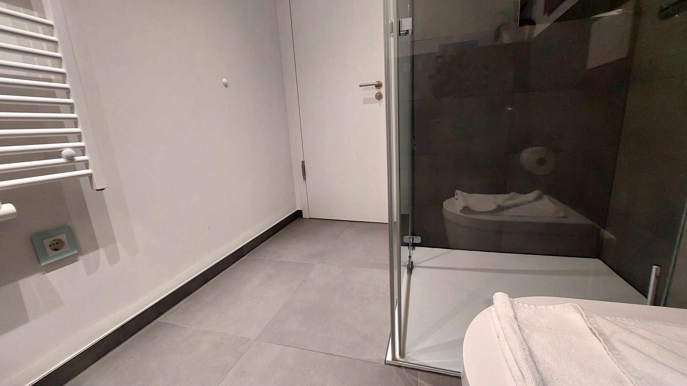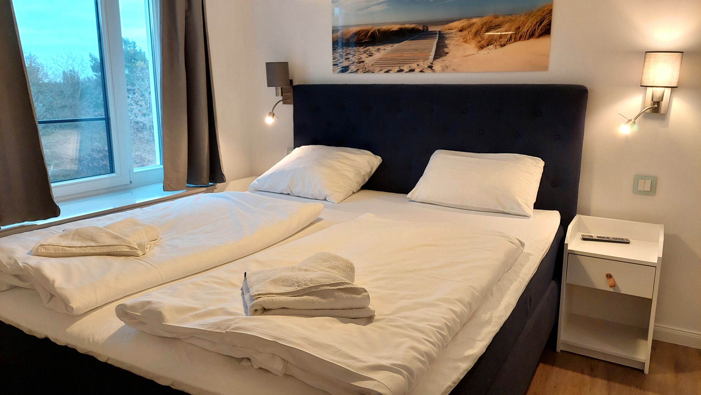 Die Wohnung verfügt über 2 vollwertige Schlafzimmer, jeweils mit einem Doppelbett, Kleiderschrank und eigenem Fernseher. Eines der Schlafzimmer hat außerdem ein eigenes Badezimmer (Bad en Suite). Das zweite Badezimmer ist ebenfalls ausgestattet mit WC, Waschtisch und ebenerdiger Dusche.