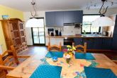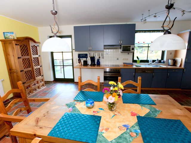 Die geräumige Wohnküche verfügt über alles, was man zum Kochen benötigt. Zudem sorgen die beleuchteten Kunstwerke an der Wand für eine tolle Lichtstimmung. Vorhanden sind u.a. Kühlschrank, Spülmaschine, Kaffeemaschine, Toaster, Mirkrowelle.