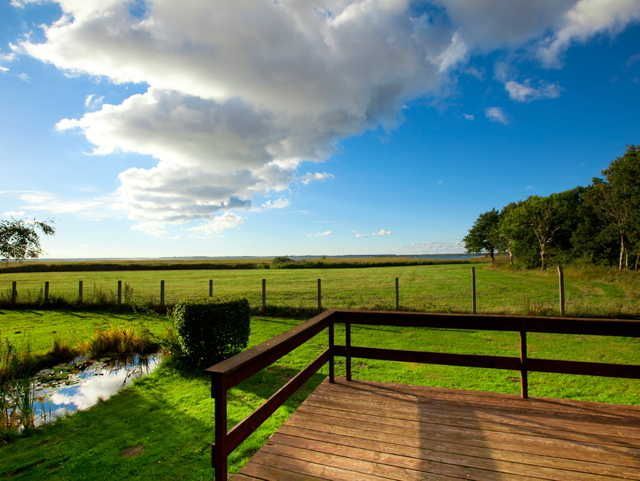 Das Ferienhaus Darßblick in Neuendorf Heide hat einen freien Blick auf den Saaler Bodden.