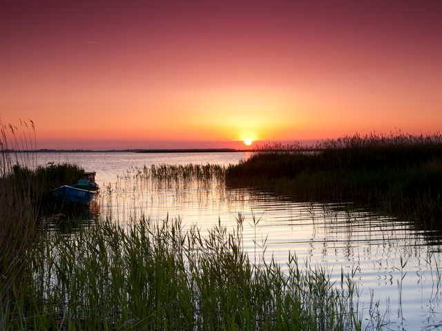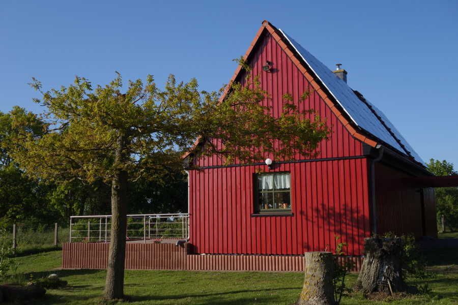 Vom Ferienhaus zum Bodden sind es nur 100 Meter. Hier gibt es einen Anlegesteg, von dem aus gesurft, Boot gefahren oder gebadet werden kann. Beim Vermieter kann ein kleines Ruderboot für 2 Personen gemietet werden.