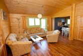 Das Wohnzimmer im Ferienhaus Hanna bietet genug Platz für die ganze Familie und läd zu gemütlichen Abendstunden ein. Es ist ausgestattet mit Holzofen, SAT-Fernseher und Radio.