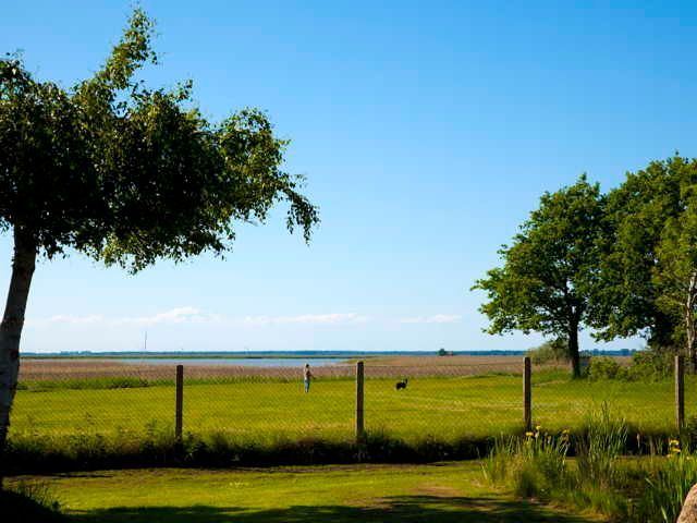 Das Ferienhaus Hanna liegt nur 100 Meter vom Saaler Bodden entfernt. Der Blick zum Bodden und nach Ahrenshoop auf der Halbinsel Fischland-Darß-Zingst ist unverbaut.