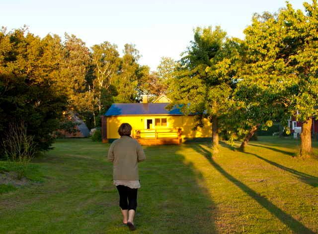 Vom Ferienhaus zum Bodden sind es nur 100 Meter. Hier gibt es einen Anlegesteg, von dem aus gesurft oder gebadet werden kann.