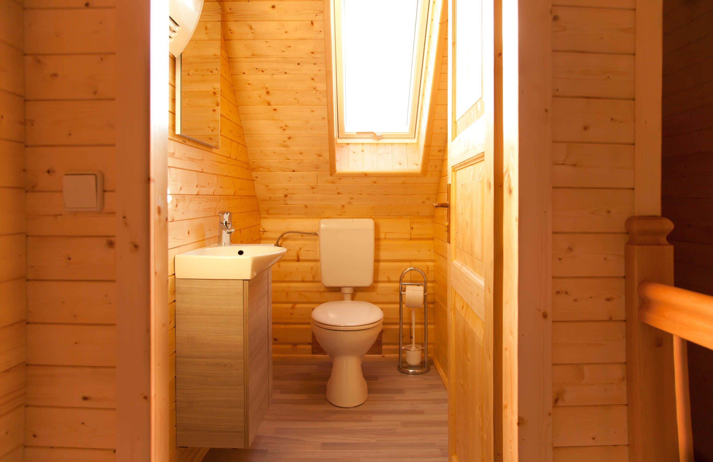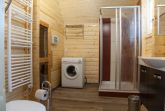 Im Erdgeschoss befindet sich das geräumige Badezimmer mit Dusche, WC und Sauna.