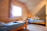 Das Ferienhaus ist ein Blockbohlenhaus für maximal 4 Personen. Es bietet eine kombinierte Wohnküche, ein Badezimmer mit Sauna, 3 Schlafzimmer und ein Gäste-WC im Obergeschoss.