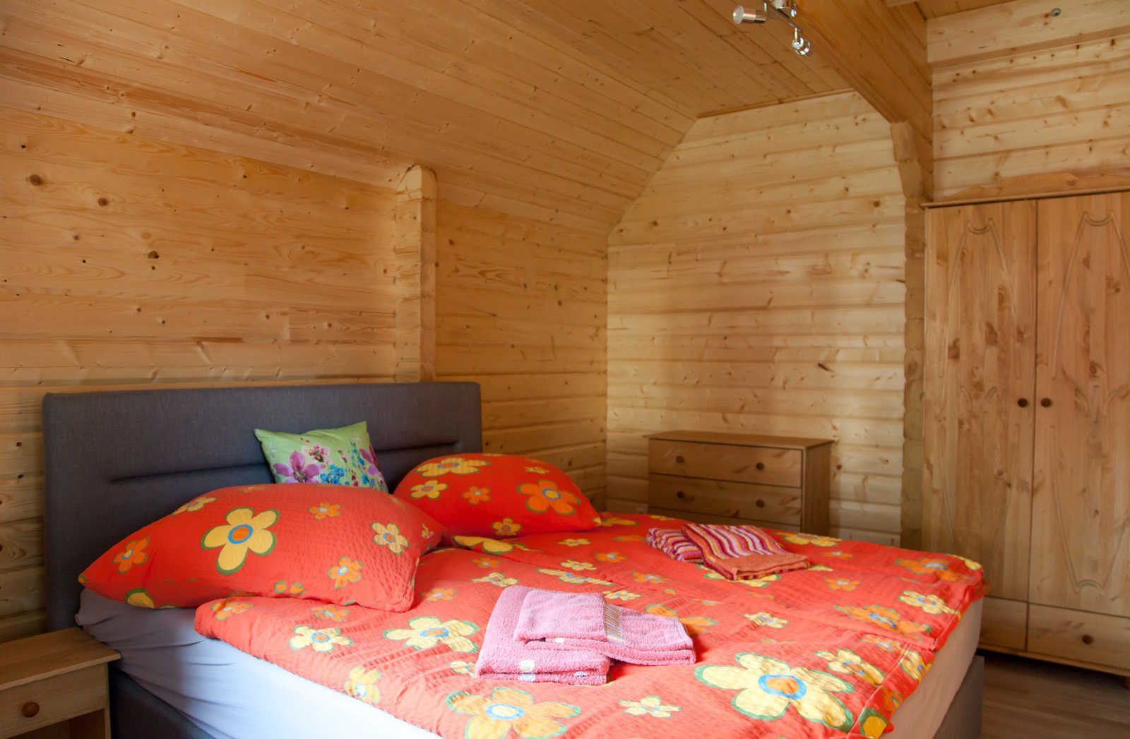 Im Erdgeschoss finden Sie ein weiteres Schlafzimmer, gleich neben dem Eingang und gegenüber vom Badezimmer. Es ist mit einem bequemen Boxspringbett (1,80 x 2,00 m) inkl. Topper ausgestattet und am morgen können Sie (je nach Jahreszeit) schon die ersten Sonnenstrahlen im Bett erhaschen. Wir haben die Türrahmen extra breit gewählt, damit auch Rollstuhlfahrer den Raum gut erreichen können.