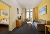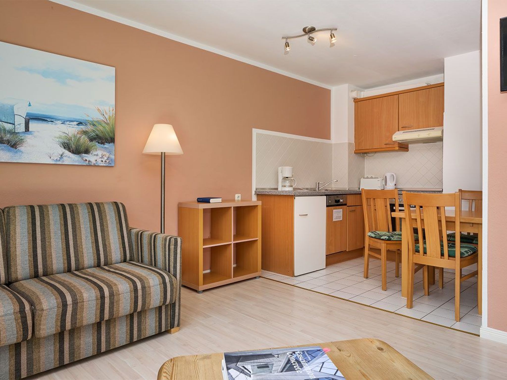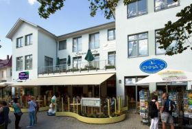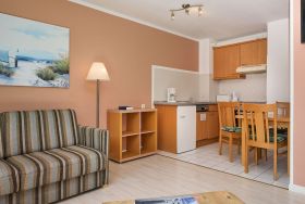 Unser im Jahr 1998 neu erbautes Appartement-Hotel Haus „Strandperle“ befindet sich mitten im Zentrum von Zinnowitz. Der feine Sandstrand und die weitläufige Promenade sind nur etwa 200m entfernt. Im Haus befinden sich ein Souvenir- und Bekleidungsgeschäft, weitere Shops, Cafés und Restaurants liegen in unmittelbarer Umgebung. Es erwarten Sie 24 großzügige Appartements in unterschiedlichen Größen und Lagen. Die Zentrale Rezeption sowie ein Restaurant befinden sich im 150m nahe gelegenem Strandhotel „Preussenhof“. Hauseigene Parkplätze (gegen Gebühr; max. Fahrzeughöhe 1,75 m) stehen Ihnen am Haus zur Verfügung. Alle Appartements verfügen über Bad mit Badewanne oder Dusche/WC, Kabel-TV und teilweise Balkon. Eine gemütliche Sitzecke sowie eine komplett ausgestattete Einbauküche sind in den Zimmern ebenfalls integriert. Unsere Appartements sind auf 3 Etagen aufgeteilt und über nur wenige Treppenstufen erreichbar. Ein Fahrstuhl ist nicht vorhanden. Das Haus ist ein Nichtraucher-Hotel, jedoch stehen unseren rauchenden Gästen auf Balkonen genügend Rückzugsmöglichkeiten zur Verfügung. Die Schlüsselübergabe erfolgt im Strandhotel Preussenhof in der Dünenstrasse 10 in 17454 Zinnowitz. Basisinformationen - Erlaubte Haustiere: 2 - erlaubte Hundegröße: mittel (30 bis 60 cm) - befindet sich in: Anlage - Art d. Wohnung: Einliegerwohnung - keine Jugendgruppen - Nichtraucherunterkunft - Schlafzimmeranzahl: 1 - Badezimmeranzahl: 1 Top Merkmale - WLAN - Heizung: überall - Balkon Schlafen Schlafzimmer 1 - Doppelbett (1,80m Breite) Badezimmer Badezimmer 1 - Dusche - Waschbecken - Toilette Kochen/Wohnen - Kühl-/Gefrierschrank: Gefrierfach, Kühlschrank - Herd: Herd - Dunstabzugshaube - Backofen - Toaster - Wasserkocher - Spülmaschine - Geschirrtücher - Anzahl Esstische: 1 - Gesamtzahl Sitzplätze: 4 - Anzahl Wohnzimmer: 1 Entertainment - Fernseher: TV Umgebung - Lebensmittelhandel: 250 m - Cafés/Restaurants: 150 m - Strand: 250 m - Hundestrand: 800 m - Wasser (Meer, See etc.): 250 m