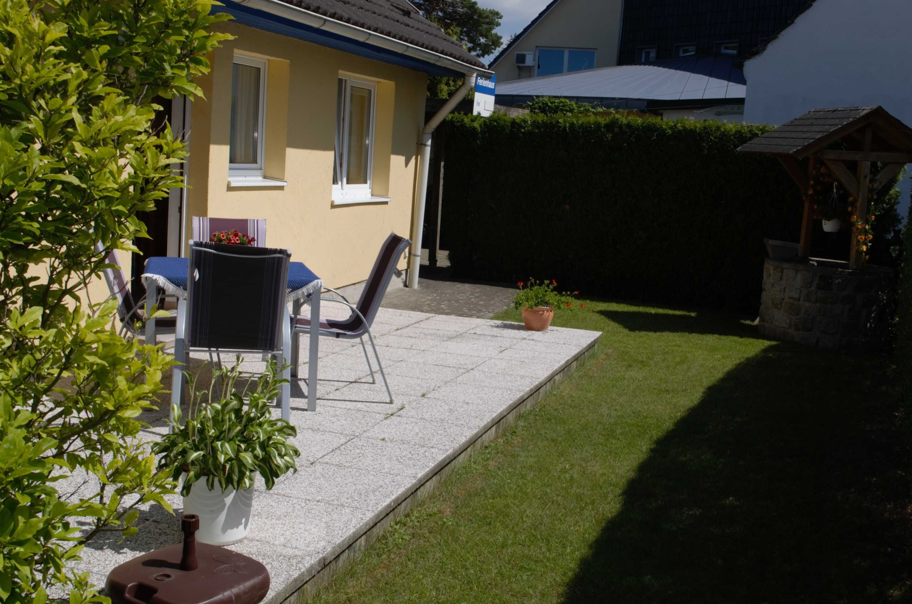 Das Ferienhaus liegt idylisch und ruhig in einem Gartengrundstück einer Eigenheimsiedlung, direkt am Kiefernwald mit Rad- und Wanderwegen.