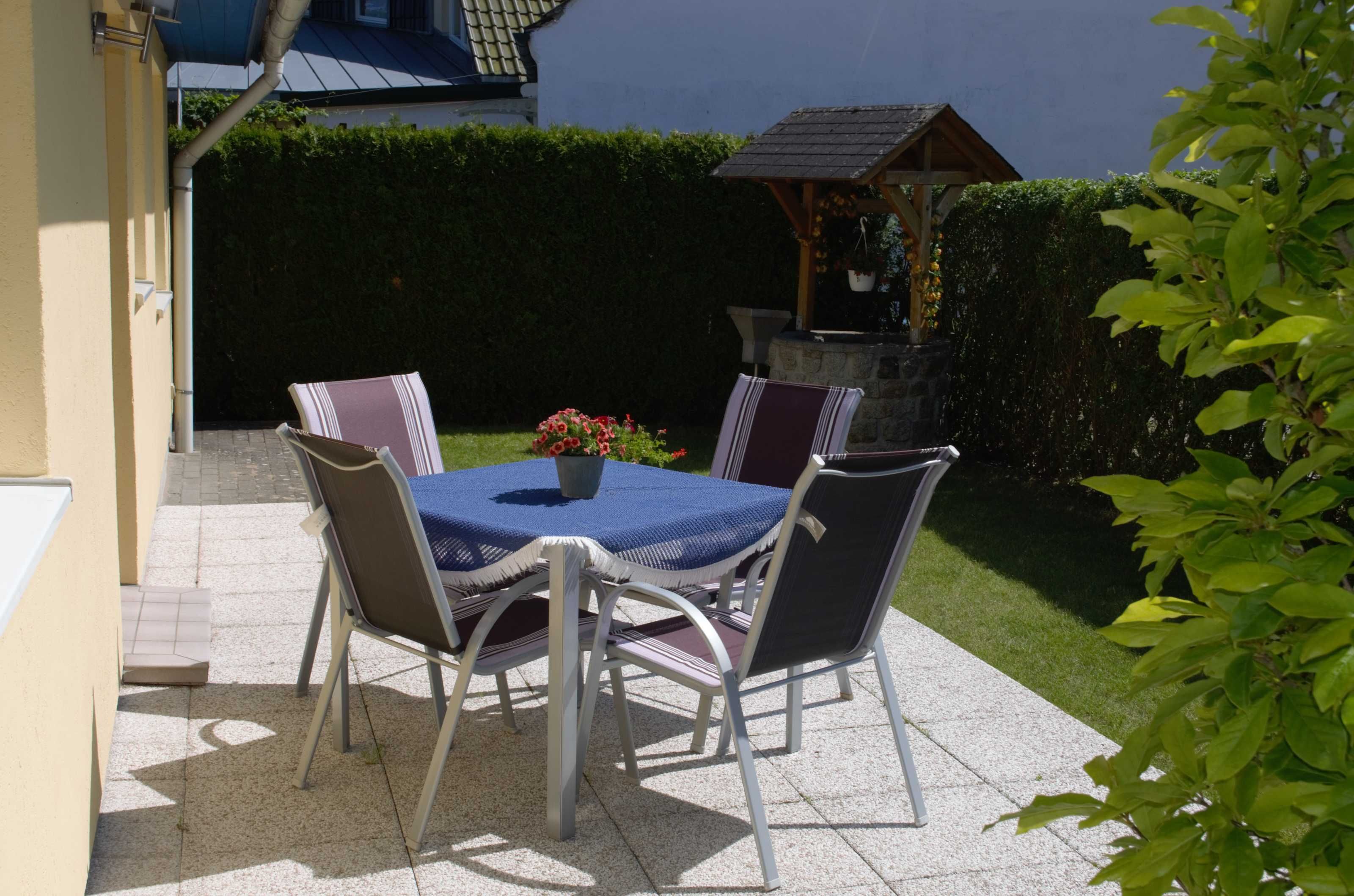 Auf der Terrasse (mit Sitzmöbel/Grill) können Sie den Tag mit einem gemütlichen Frühstück beginnen, ein Sonnenbad nehmen oder den Tag mit einem Grillabend beenden.