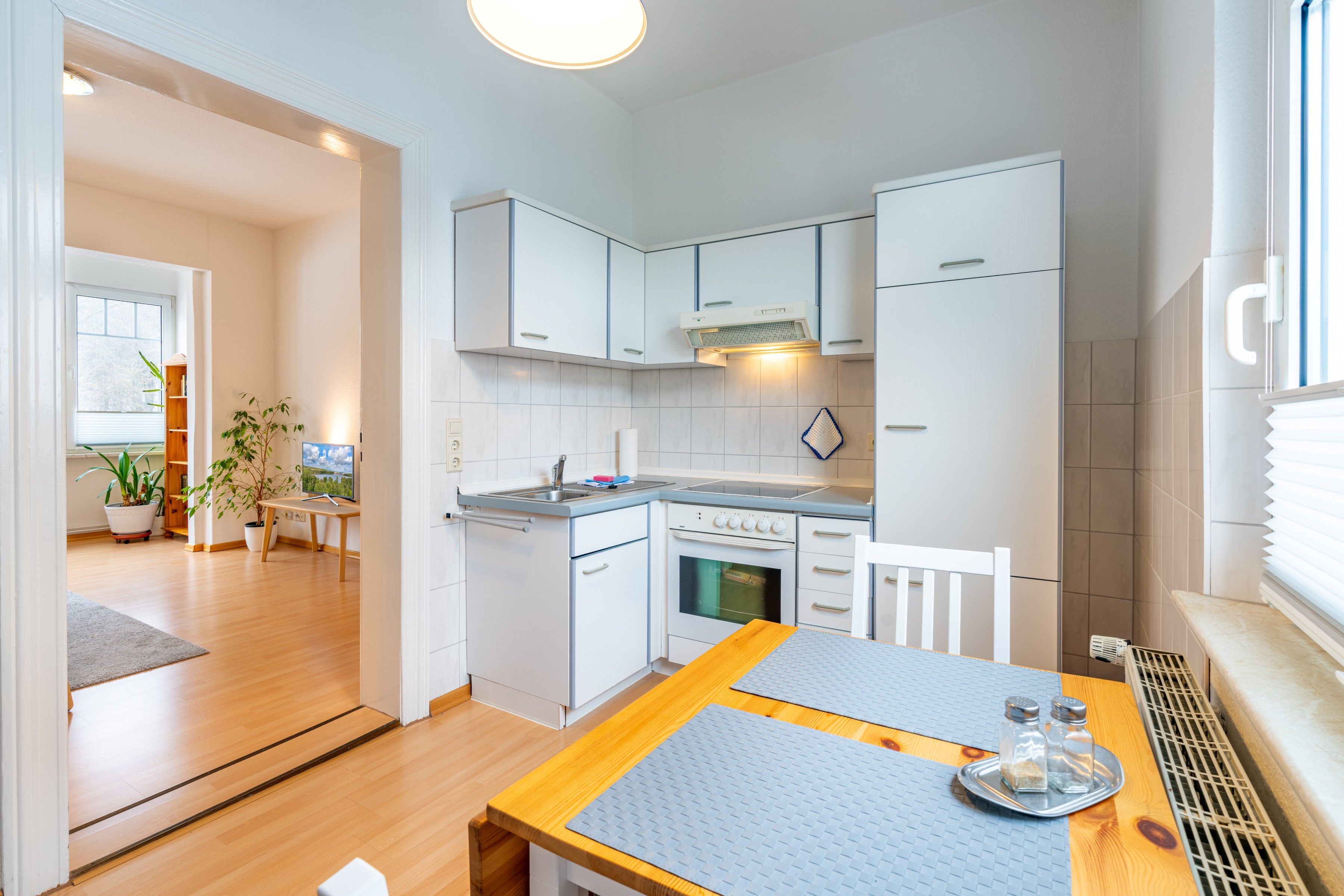 Die Ferienwohnung 02 im ersten Obergeschoss bietet mit 56 qm Platz für bis zu vier Personen; sie ist großzügig, hell und sehr geräumig - eben die perfekte Wohnung für einen Urlaub;